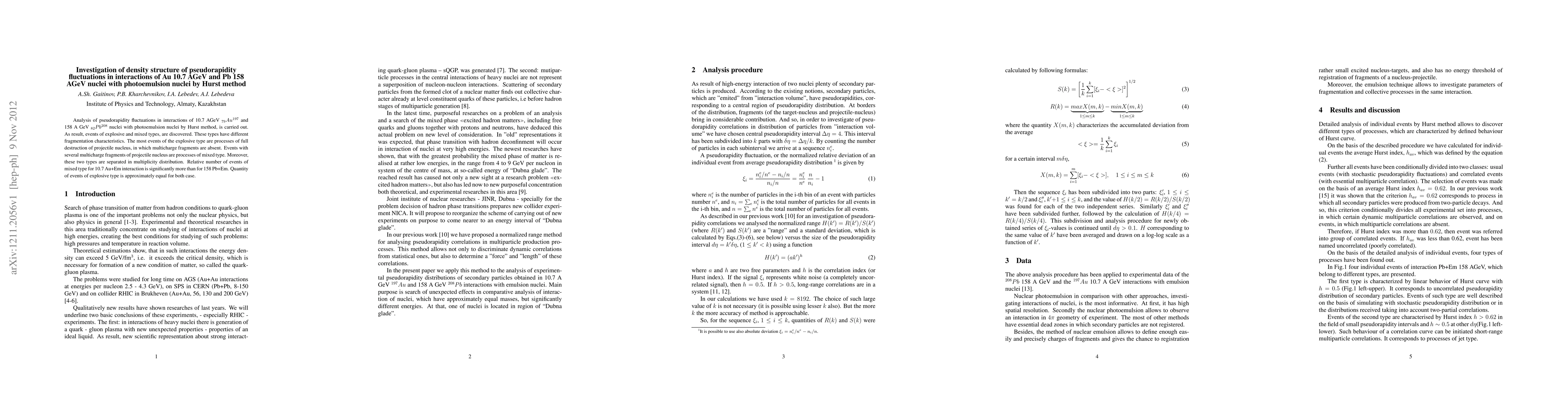 Analysis of pseudorapidity fluctuations in interactions of 10.7 AGeV $_{79}Au^{197}$ and 158 A GeV $_{82}Pb^{208}$ nuclei with photoemulsion nuclei by Hurst method, is carried out. As result, events of explosive and mixed types, are discovered. These types have different fragmentation characteristics. The most events of the explosive type are processes of full destruction of projectile nucleus, in which multicharge fragments are absent. Events with several multicharge fragments of projectile nucleus are processes of mixed type. Moreover, these two types are separated in multiplicity distribution. Relative number of events of mixed type for 10.7 Au+Em interaction is significantly more than for 158 Pb+Em. Quantity of events of explosive type is approximately equal for both case.