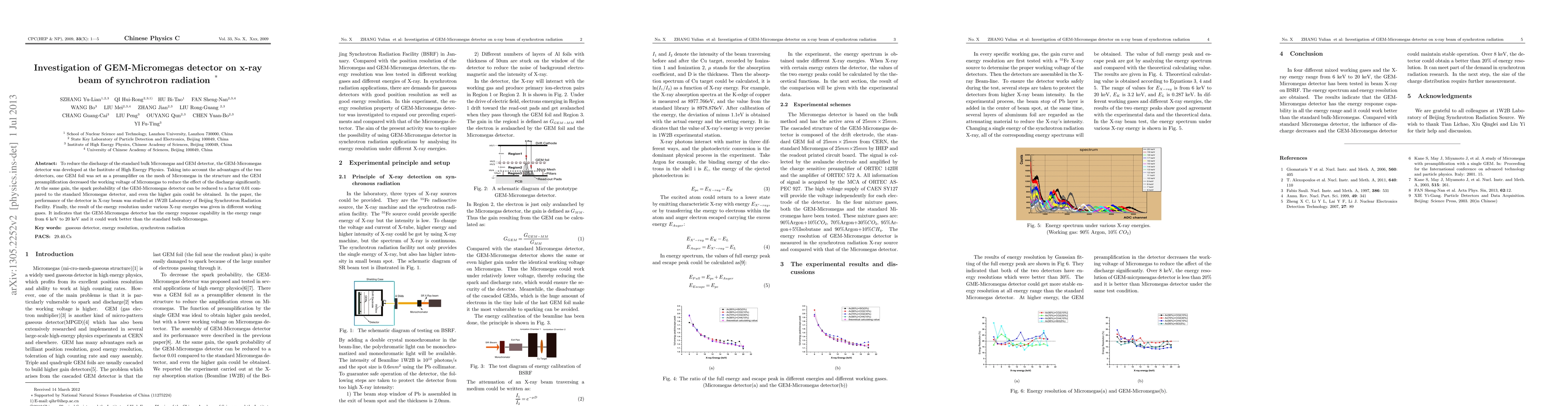 The GEM-Micromegas detector, developed to address discharge issues in standard detectors, combines GEM preamplification with Micromegas to lower working voltage and improve discharge resistance. Performance tests at Beijing Synchrotron Radiation Facility showed superior energy resolution and response across various X-ray energies compared to standard Bulk-Micromegas.