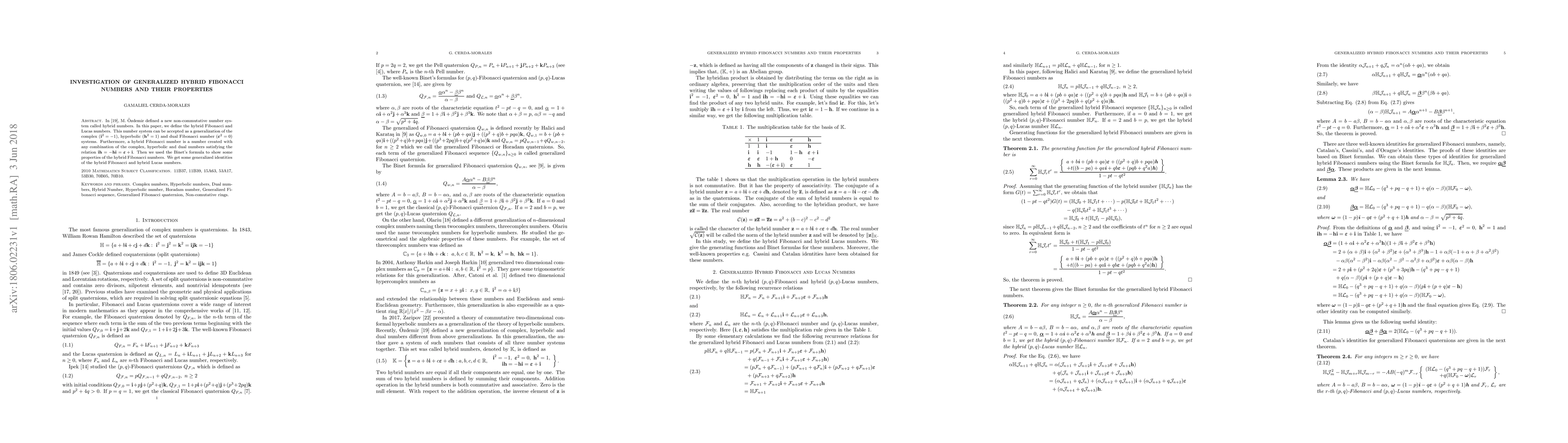 This paper introduces a new number system called hybrid numbers, which generalize complex, hyperbolic, and dual Fibonacci numbers. It explores properties of hybrid Fibonacci numbers using Binet's formula and discovers generalized identities.