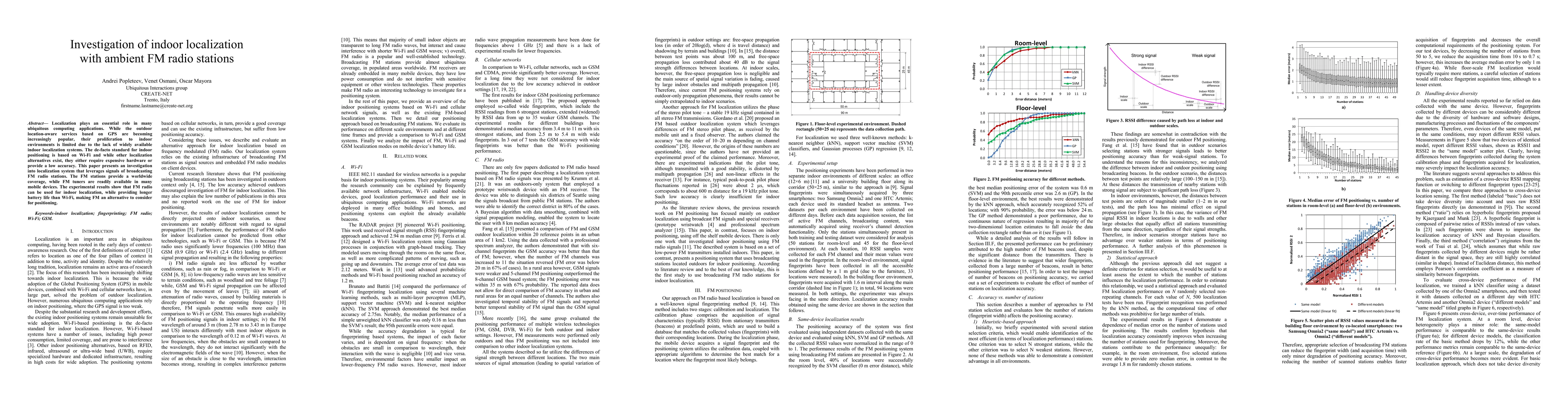 This paper investigates using ambient FM radio stations for indoor localization, finding that FM signals offer a cost-effective and accurate alternative to Wi-Fi, with the added benefit of longer battery life for mobile devices.