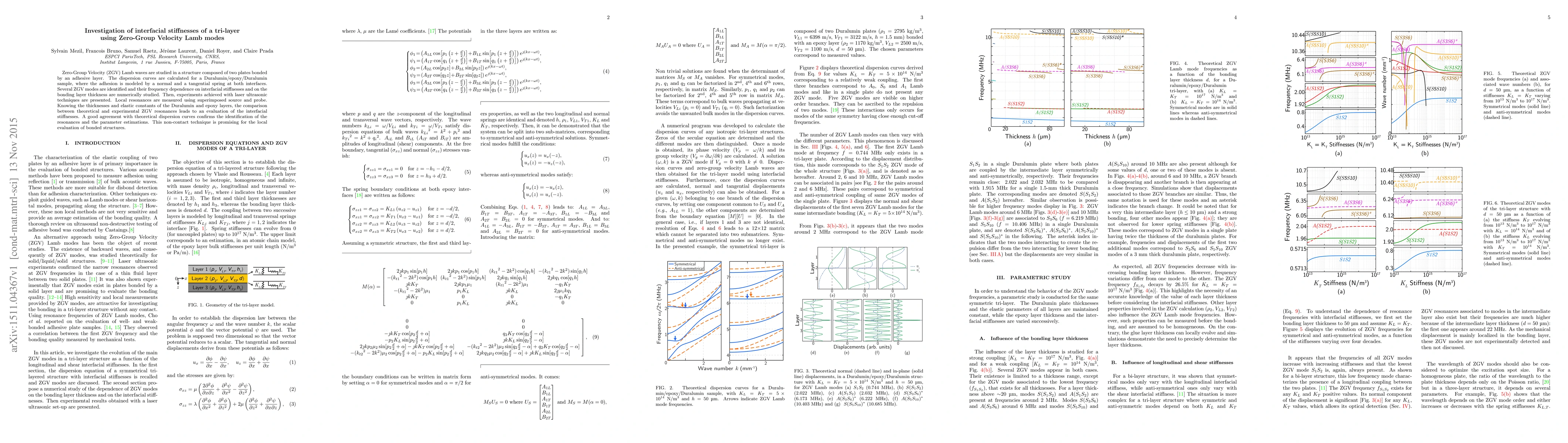 Researchers used Zero-Group Velocity Lamb waves to study a tri-layer structure, identifying resonances that were compared to experiments using laser ultrasonic techniques to evaluate interfacial stiffnesses in bonded structures.
