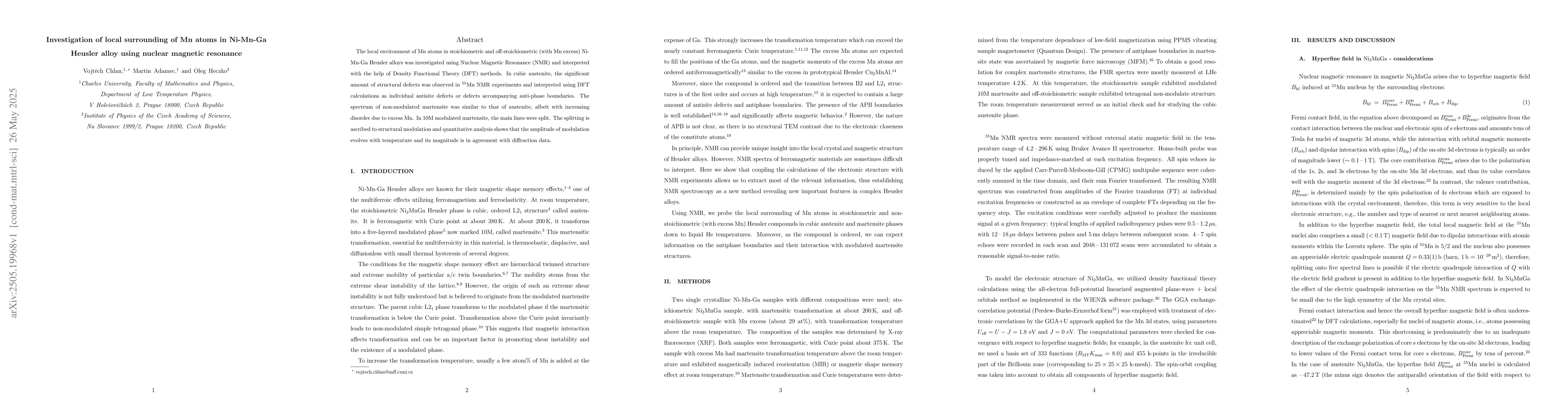 The integration of NMR with DFT to elucidate the structural defects around Mn in Ni-Mn-Ga Heusler alloys, providing temperature-dependent modulation analysis in martensite phases.