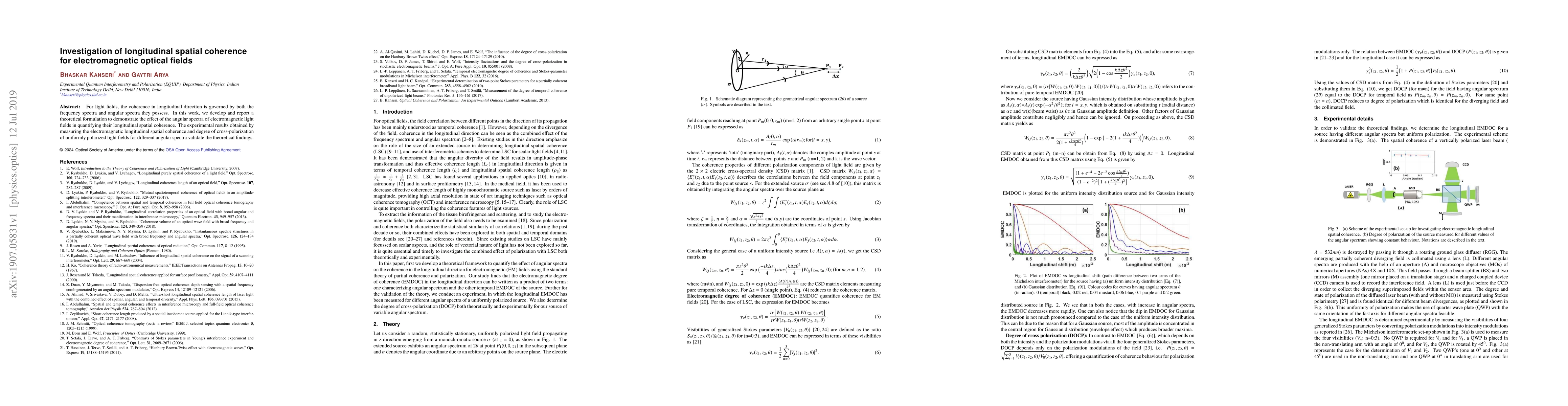 This paper develops a theoretical framework to quantify the longitudinal spatial coherence of electromagnetic light fields based on their angular spectra, and experimental results confirm the theoretical model by measuring coherence and cross-polarization for various angular spectra.