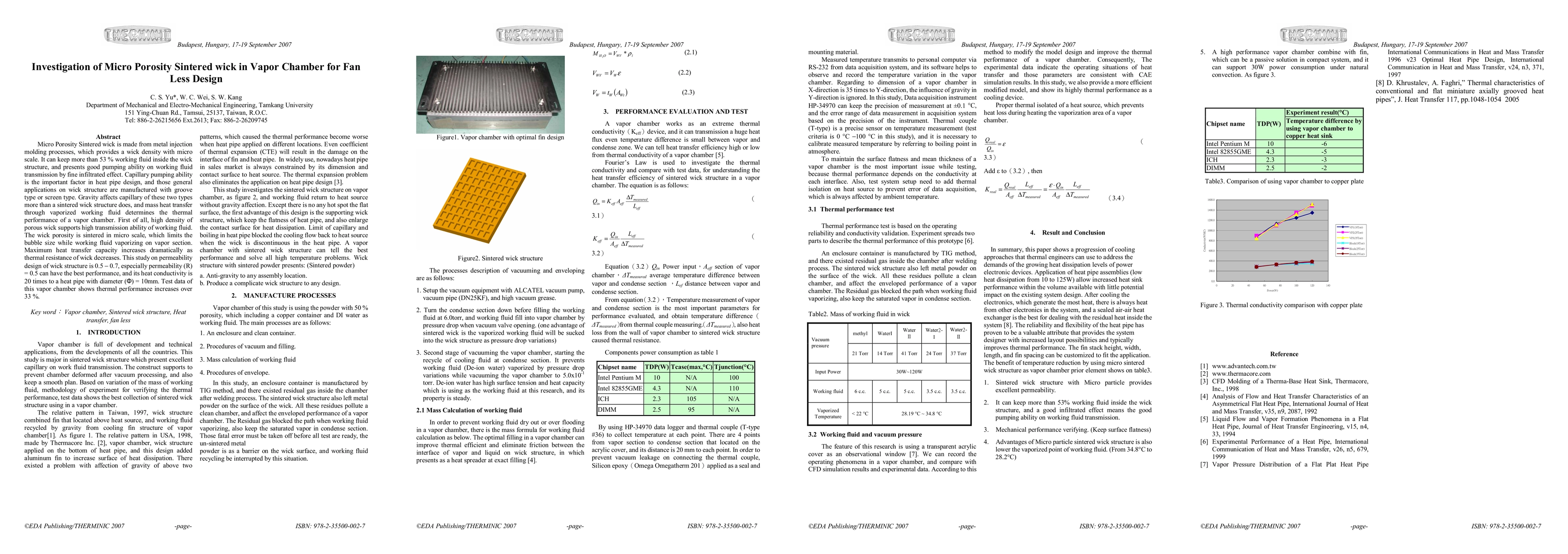 This study investigates the micro porosity sintered wick in vapor chambers for fanless design, demonstrating its superior capillary pumping ability and thermal performance. The sintered wick structure, with permeability of 0.5, shows a 33% increase in thermal performance compared to traditional wick designs.