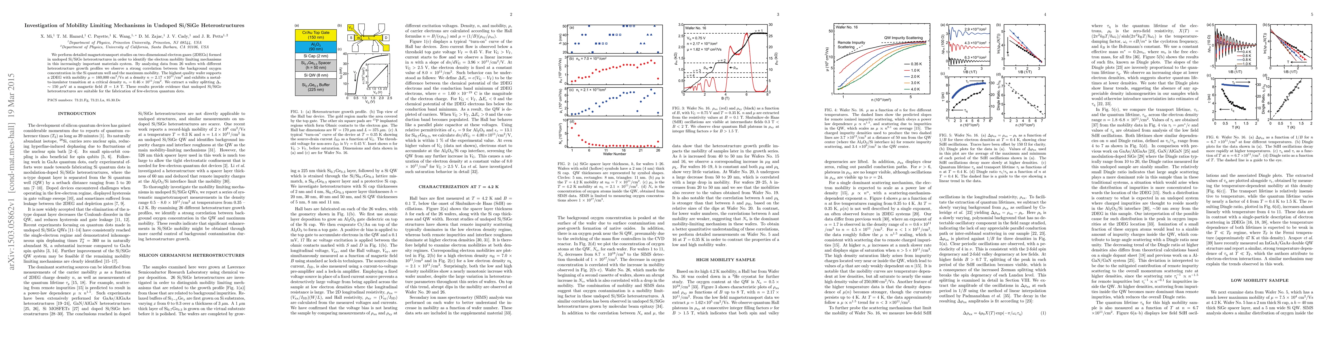 This study investigates electron mobility limiting mechanisms in undoped Si/SiGe heterostructures through magnetotransport analysis, revealing a strong link between background oxygen concentration and maximum mobility, with the highest quality wafers supporting a 2DEG mobility of 160,000 cm^2/Vs. The findings suggest these heterostructures are suitable for few-electron quantum dot fabrication.