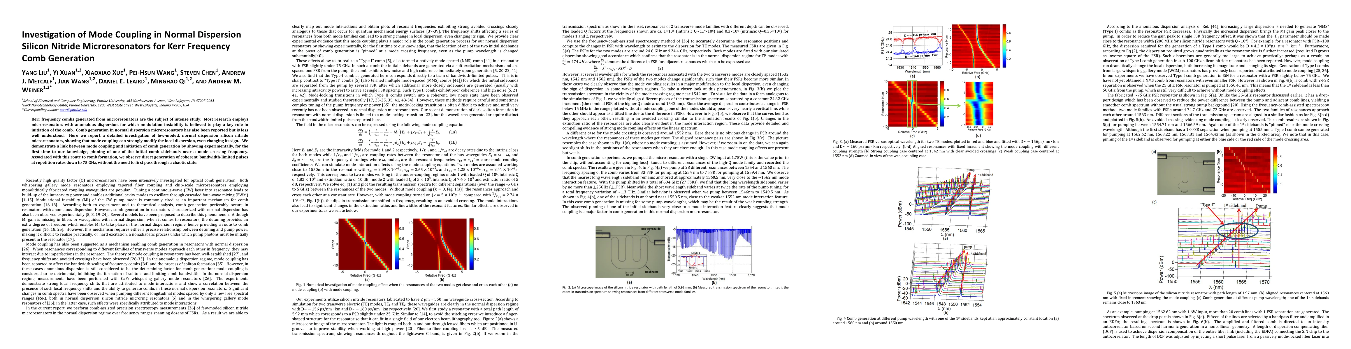 This paper investigates mode coupling in normal dispersion silicon nitride microresonators, demonstrating that it can significantly alter local dispersion and initiate Kerr frequency comb generation directly, without passing through a chaotic state. The study shows, for the first time, the pinning of a comb sideband near a mode crossing frequency.