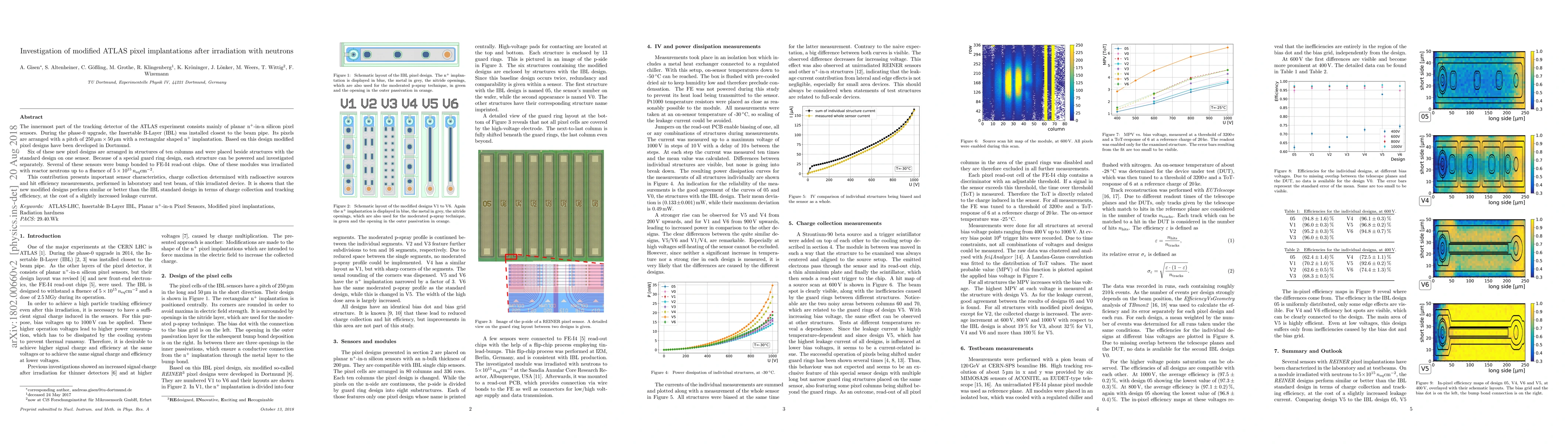 This paper investigates modified pixel designs in the ATLAS experiment's Insertable B-Layer (IBL) after neutron irradiation, showing that the new designs maintain or exceed standard performance in charge collection and tracking efficiency, albeit with a slightly higher leakage current.