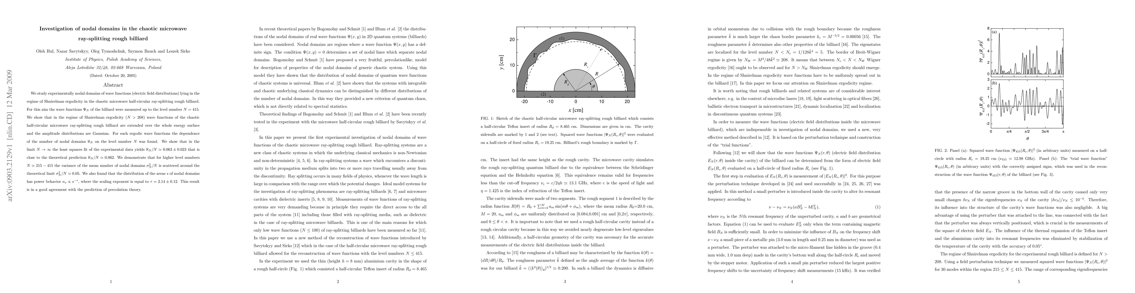 This research experimentally investigates the nodal domains in wave functions of chaotic microwave billiards, finding that in the ergodic regime, the number of nodal domains scales as aleph_N/N ≈ 0.063, close to theoretical predictions. The study also reveals a power-law distribution for nodal domain areas, consistent with percolation theory.