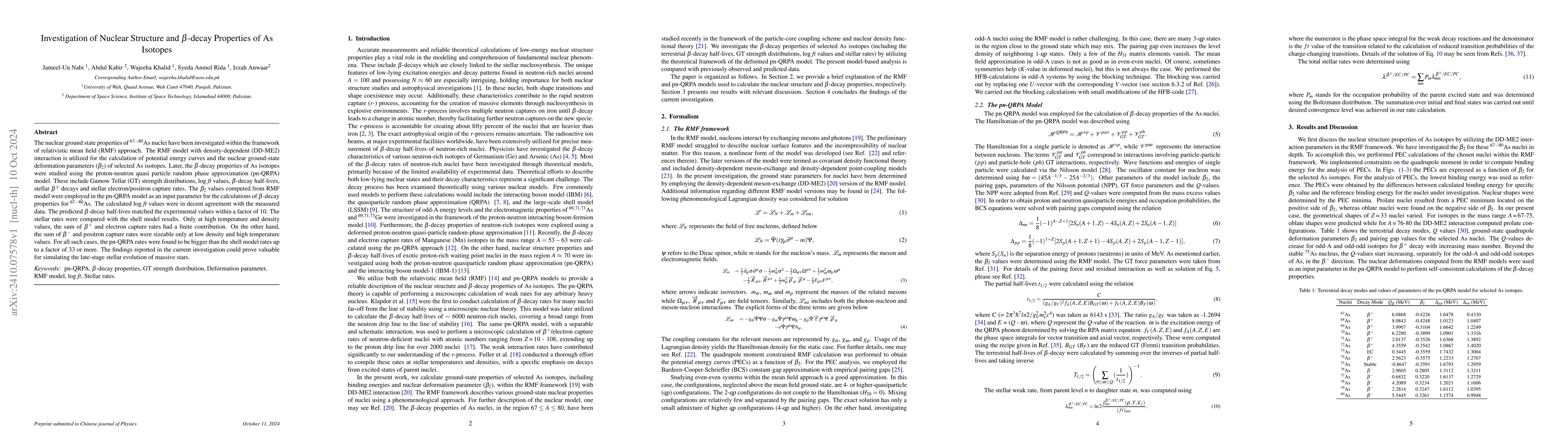 This research investigates the nuclear structure and β-decay properties of 67,80As isotopes using the relativistic mean field (RMF) and proton-neutron quasiparticle random phase approximation (pnQRPA) models. The study finds decent agreement between calculated log ft values and measured data, and predicts β-decay half lives within a factor of 10. Stellar decay rates show significant differences from shell model results, particularly under extreme temperature and density conditions.