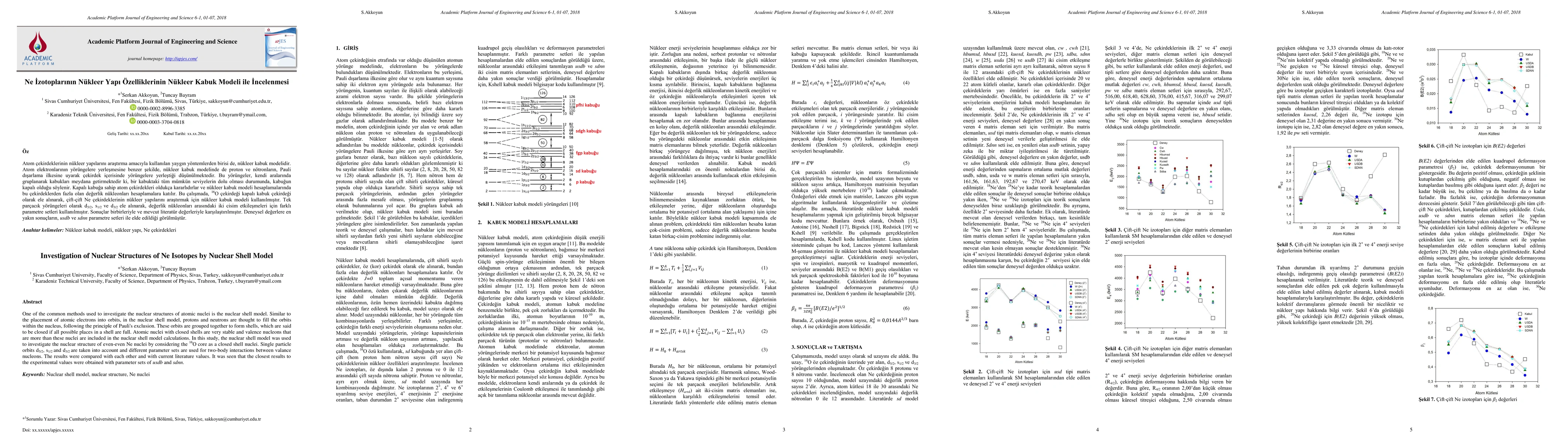 One of the common methods used to investigate the nuclear structures of atomic nuclei is the nuclear shell model. Similar to the placement of atomic electrons into orbits, in the nuclear shell model, protons and neutrons are thought to fill the orbits within the nucleus, following the principle of Pauli's exclusion. These orbits are grouped together to form shells, which are said to be closed if all possible places in a shell are full. Atomic nuclei with closed shells are very stable and valence nucleons that are more than these nuclei are included in the nuclear shell model calculations. In this study, the nuclear shell model was used to investigate the nuclear structure of even-even Ne nuclei by considering the 16O core as a closed shell nuclei. Single particle orbits d5/2, s1/2 and d3/2 are taken into account and different parameter sets are used for two-body interactions between valance nucleons. The results were compared with each other and with current literature values. It was seen that the closest results to the experimental values were obtained with parameter sets of usdb and sdnn.