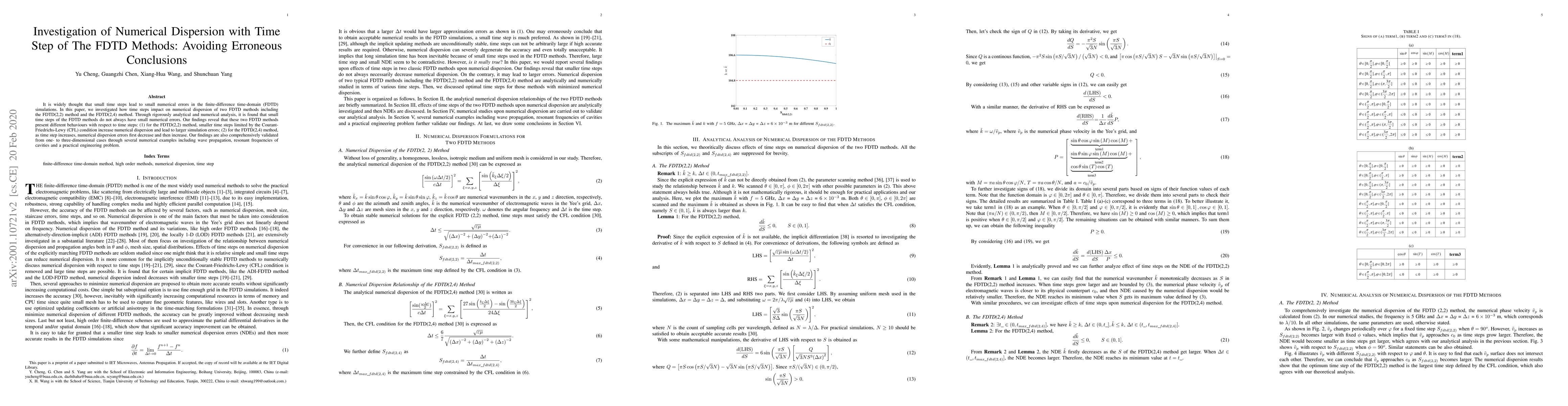 This paper investigates how time steps affect numerical dispersion in FDTD methods, finding that small time steps do not always lead to small errors. It reveals differing behaviors: the FDTD(2,2) method shows increased dispersion with smaller time steps, while the FDTD(2,4) method exhibits a first decrease then increase in dispersion errors with larger time steps.
