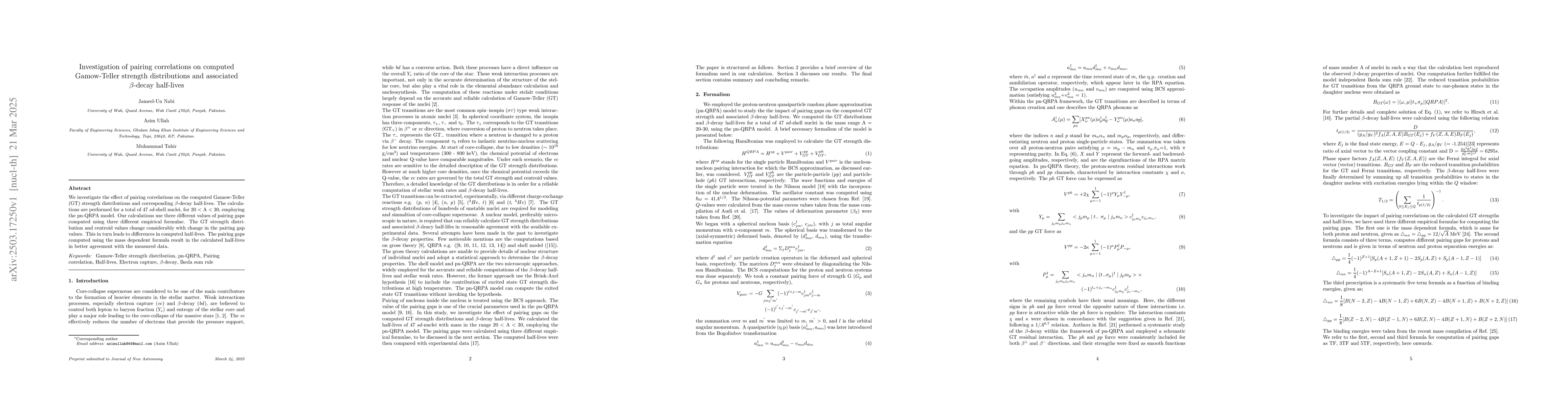 The research presents a detailed analysis of pairing correlations' impact on GT strength distributions and $eta$-decay half-lives using the pn-QRPA model.
