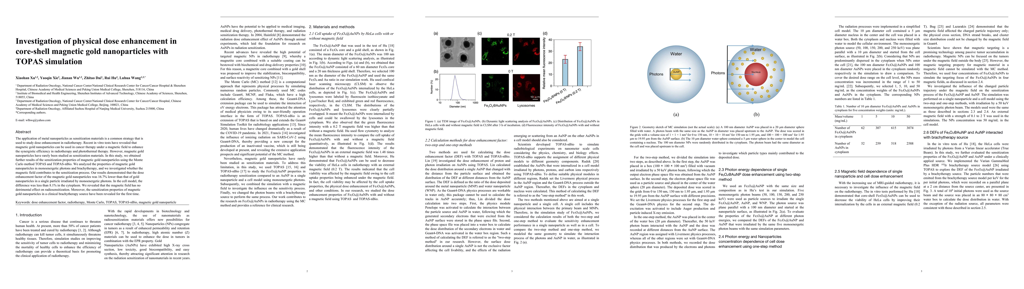 This study utilized TOPAS simulation to investigate the dose enhancement properties of core-shell magnetic gold nanoparticles in radiotherapy. Results showed that magnetic gold nanoparticles have a dose enhancement factor lower than gold nanoparticles but confirmed that magnetic fields do not negatively impact their radiosensitization capabilities.