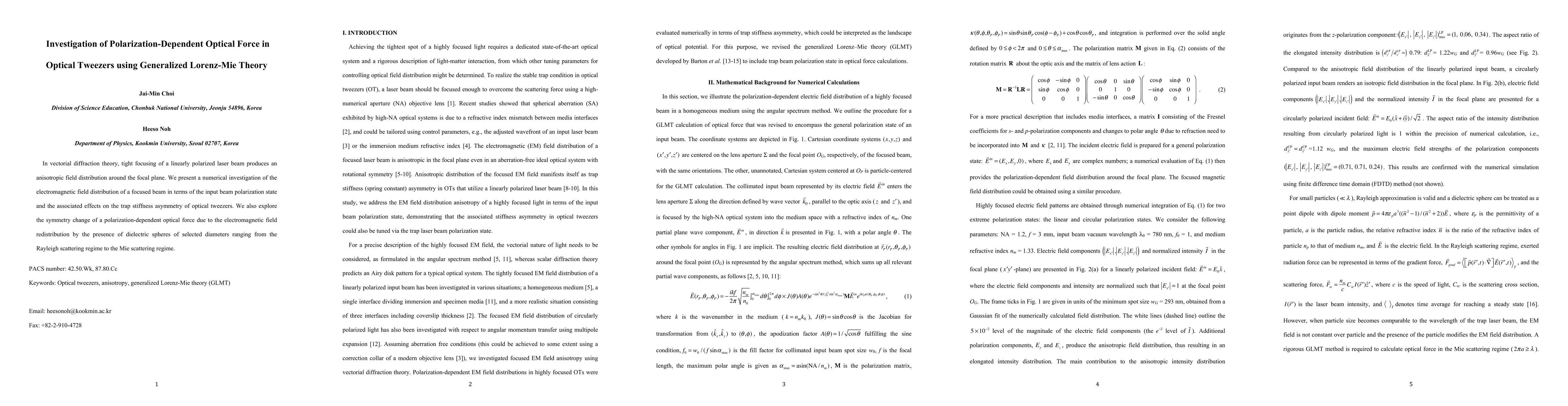 This paper investigates how the polarization state of a laser beam affects the electromagnetic field distribution and the asymmetry in trap stiffness of optical tweezers, using Generalized Lorenz-Mie theory. It explores the symmetry change in polarization-dependent optical forces due to dielectric spheres of varying sizes, from Rayleigh to Mie scattering regimes.
