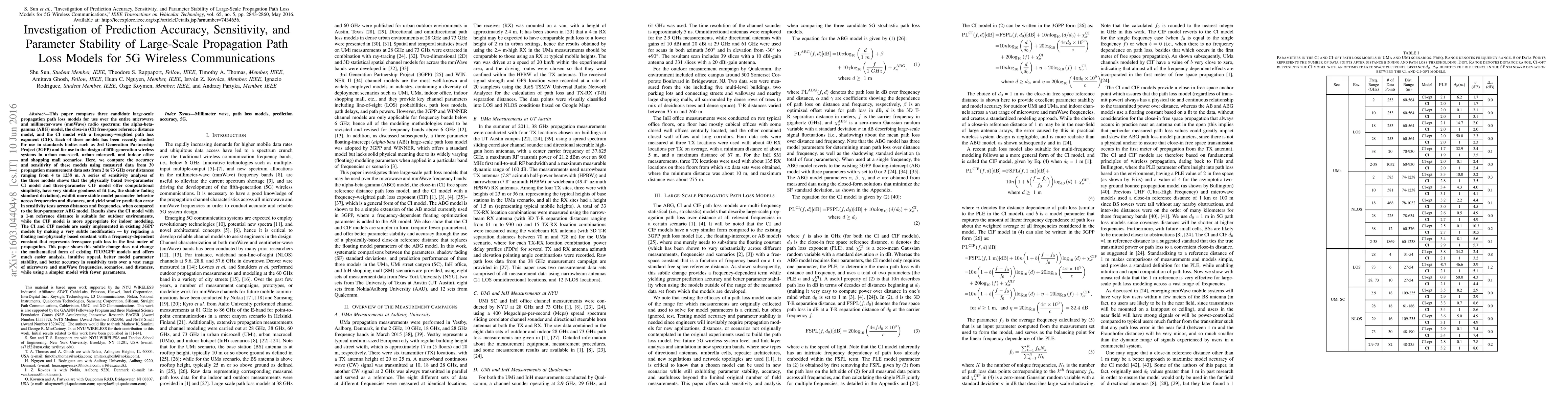 This paper evaluates three large-scale propagation path loss models for 5G wireless communications, finding that the close-in (CI) and CIF models offer computational simplicity, stability, and smaller prediction errors compared to the ABG model. The CI model is best for outdoor scenarios, while CIF is more suitable for indoor environments.