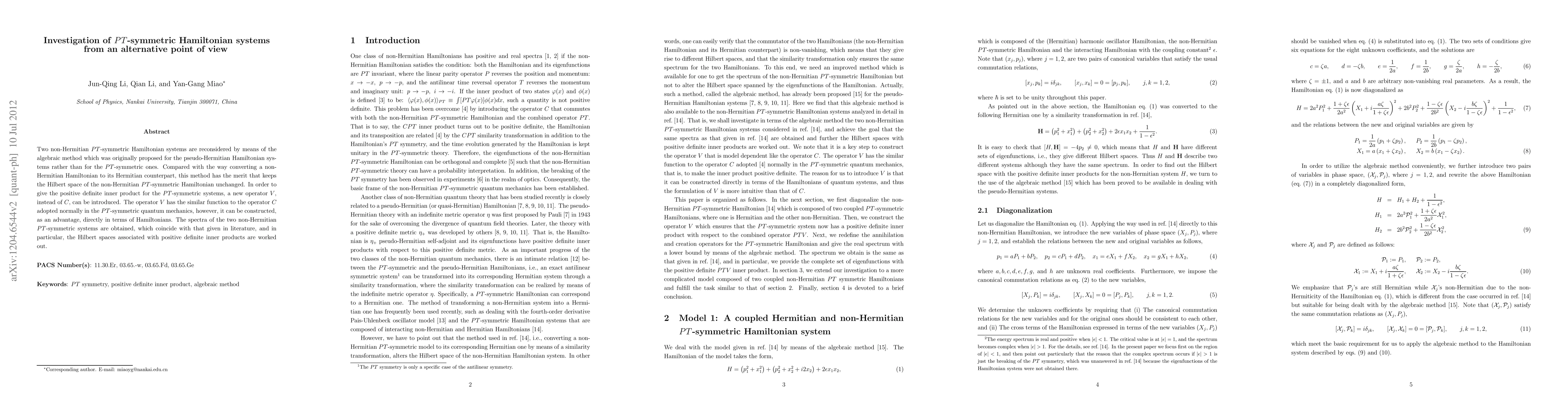 This paper explores two non-Hermitian PT-symmetric Hamiltonian systems using an algebraic method originally designed for pseudo-Hermitian systems. This method preserves the Hilbert space of the PT-symmetric Hamiltonian and introduces a new operator V to provide a positive definite inner product, yielding spectra consistent with existing literature.