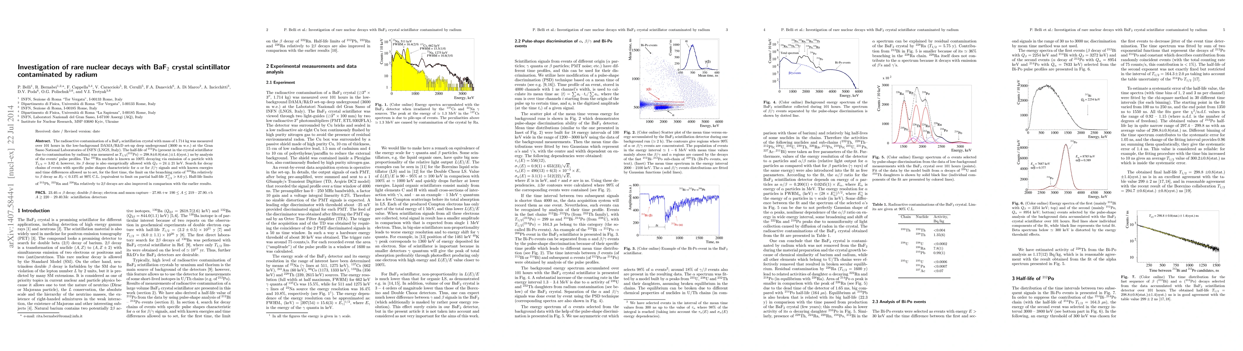 The radioactive contamination of a BaF$_2$ scintillation crystal with mass of 1.714 kg was measured over 101 hours in the low-background DAMA/R&D set-up deep underground (3600 m w.e.) at the Gran Sasso National Laboratories of INFN (LNGS, Italy). The half-life of $^{212}$Po (present in the crystal scintillator due to contamination by radium) was measured as $T_{1/2}(^{212}$Po) = 298.8$\pm$0.8(stat.)$\pm$1.4(syst.) ns by analysis of the events' pulse profiles. The $^{222}$Rn nuclide is known as 100% decaying via emission of $\alpha$ particle with $T_{1/2}$ = 3.82 d; however, its $\beta$ decay is also energetically allowed with $Q_\beta = 24\pm21$ keV. Search for decay chains of events with specific pulse shapes characteristic for $\alpha$ or for $\beta/\gamma$ signals and with known energies and time differences allowed us to set, for the first time, the limit on the branching ratio of $^{222}$Rn relatively to $\beta$ decay as $B_\beta < 0.13$% at 90% C.L. (equivalent to limit on partial half-life $T_{1/2}^\beta > 8.0$ y). Half-life limits of $^{212}$Pb, $^{222}$Rn and $^{226}$Ra relatively to $2\beta$ decays are also improved in comparison with the earlier results.