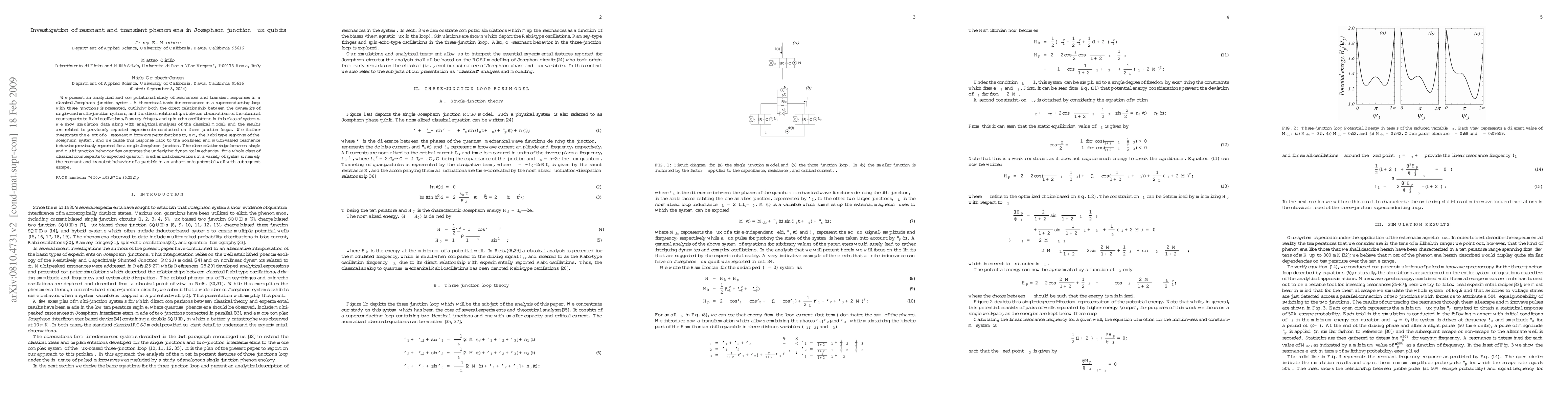 We present an analytical and computational study of resonances and transient responses in a classical Josephson junction system. A theoretical basis for resonances in a superconducting loop with three junctions is presented, outlining both the direct relationship between the dynamics of single- and multi-junction systems, and the direct relationships between observations of the classical counterparts to Rabi oscillations, Ramsey fringes, and spin echo oscillations in this class of systems. We show simulations data along with analytical analyses of the classical model, and the results are related to previously reported experiments conducted on three junction loops. We further investigate the effect of off-resonant microwave perturbations to, e.g., the Rabi-type response of the Josephson system, and we relate this response back to the nonlinear and multi-valued resonance behavior previously reported for a single Josephson junction. The close relationships between single and multi-junction behavior demonstrates the underlying dynamical mechanism for a whole class of classical counterparts to expected quantum mechanical observations in a variety of systems; namely the resonant and transient behavior of a particle in an anharmonic potential well with subsequent escape.