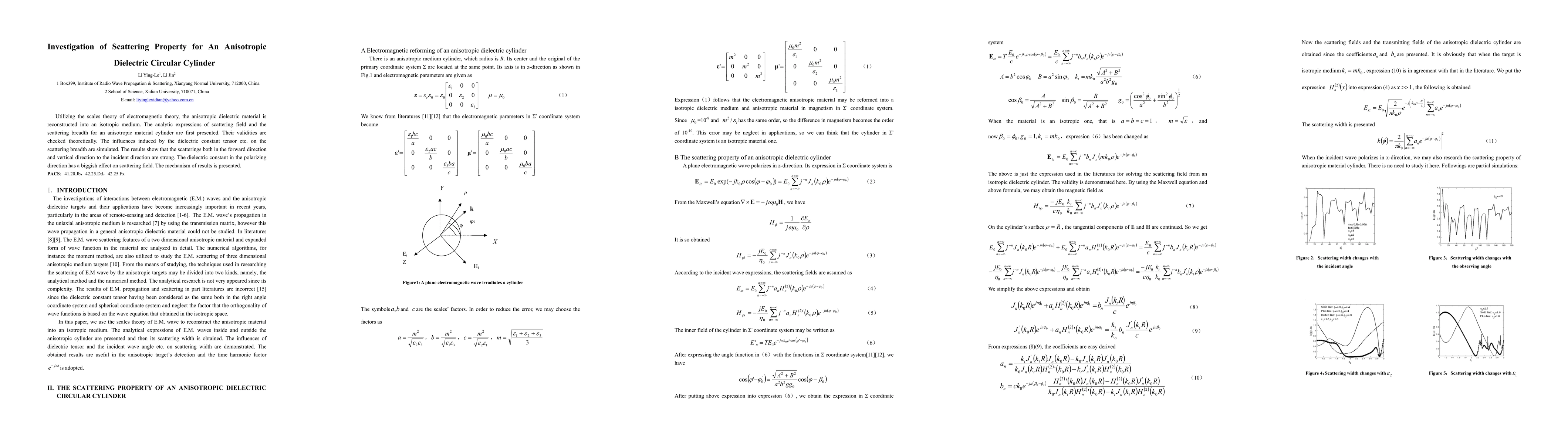 This research derives analytical expressions for scattering fields and scattering widths of an anisotropic dielectric cylinder, validated theoretically. Simulations reveal strong scattering in forward and vertical directions, with the dielectric constant in the polarizing direction significantly impacting scattering fields.