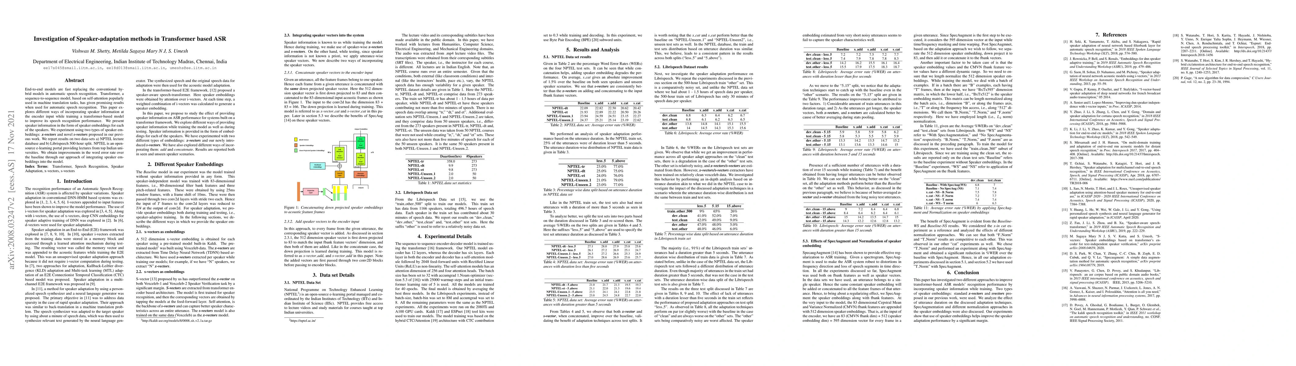 End-to-end models are fast replacing the conventional hybrid models in automatic speech recognition. Transformer, a sequence-to-sequence model, based on self-attention popularly used in machine translation tasks, has given promising results when used for automatic speech recognition. This paper explores different ways of incorporating speaker information at the encoder input while training a transformer-based model to improve its speech recognition performance. We present speaker information in the form of speaker embeddings for each of the speakers. We experiment using two types of speaker embeddings: x-vectors and novel s-vectors proposed in our previous work. We report results on two datasets a) NPTEL lecture database and b) Librispeech 500-hour split. NPTEL is an open-source e-learning portal providing lectures from top Indian universities. We obtain improvements in the word error rate over the baseline through our approach of integrating speaker embeddings into the model.