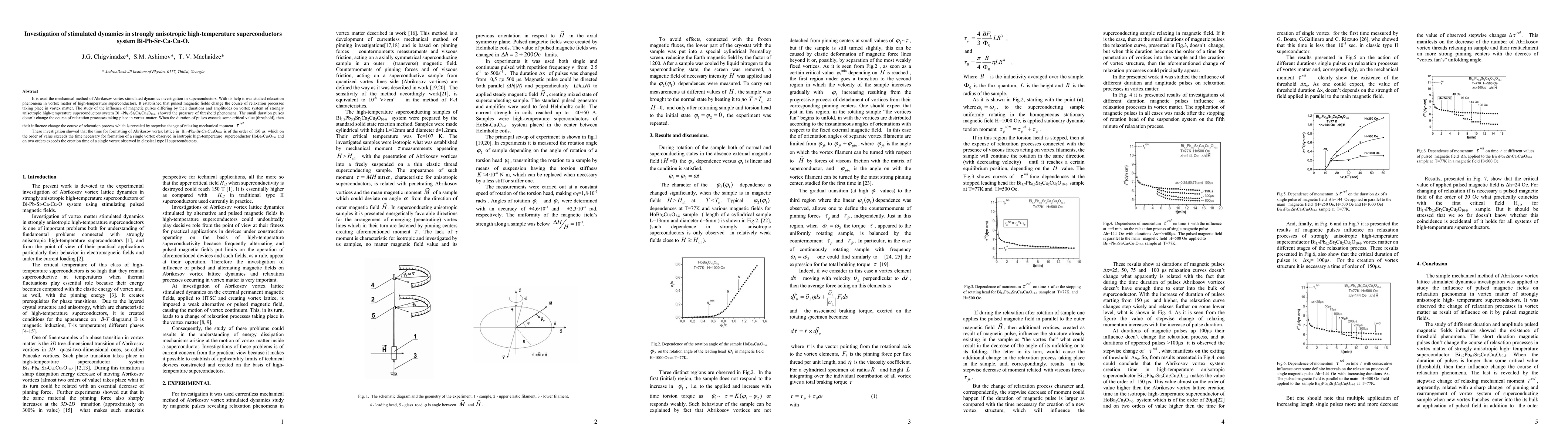 It is used the mechanical method of Abrikosov vortex stimulated dynamics investigation in superconductors. With its help it was studied relaxation phenomena in vortex matter of high-temperature superconductors. It established that pulsed magnetic fields change the course of relaxation processes taking place in vortex matter. The study of the influence of magnetic pulses differing by their durations and amplitudes on vortex system of strongly anisotropic high-temperature superconductors system Bi1.7Pb0.3Sr2Ca2Cu3O10-d showed the presence of threshold phenomena. The small duration pulses do not change the course of relaxation processes taking place in vortex matter. When the duration of pulses exceeds some critical value (threshold), then their influence change the course of relaxation process which is revealed by stepwise change of relaxing mechanical moment.. These investigation showed that the time for formatting of Abrikosov vortex lattice in Bi1.7Pb0.3Sr2Ca2Cu3O10-d is of the order of 150 us which on the order of value exceeds the time necessary for formation of a single vortex observed in isotropic high-temperature superconductor HoBa2Cu3O7-d and on two orders exceeds the creation time of a single vortex observed in classical type II superconductors.