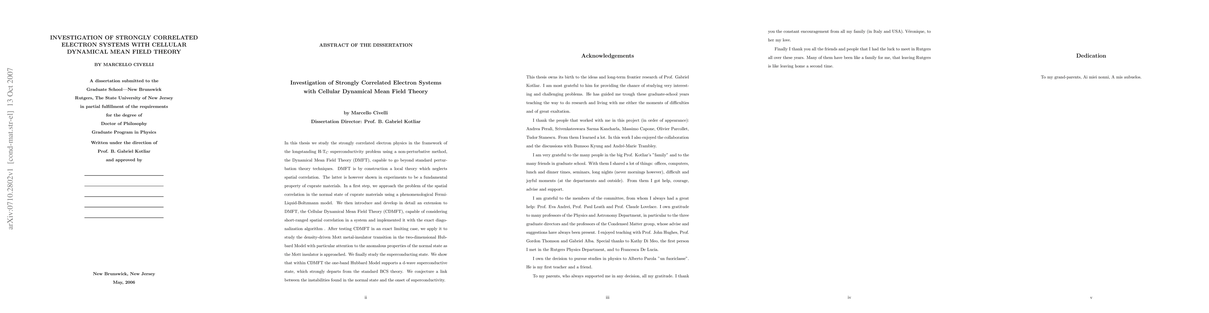 This research investigates strongly correlated electron systems, particularly cuprate superconductors, using the Cellular Dynamical Mean Field Theory (CDMFT) to account for spatial correlations. The study reveals anomalous properties near the Mott insulator and supports a d-wave superconducting state, suggesting a connection between normal state instabilities and superconductivity.