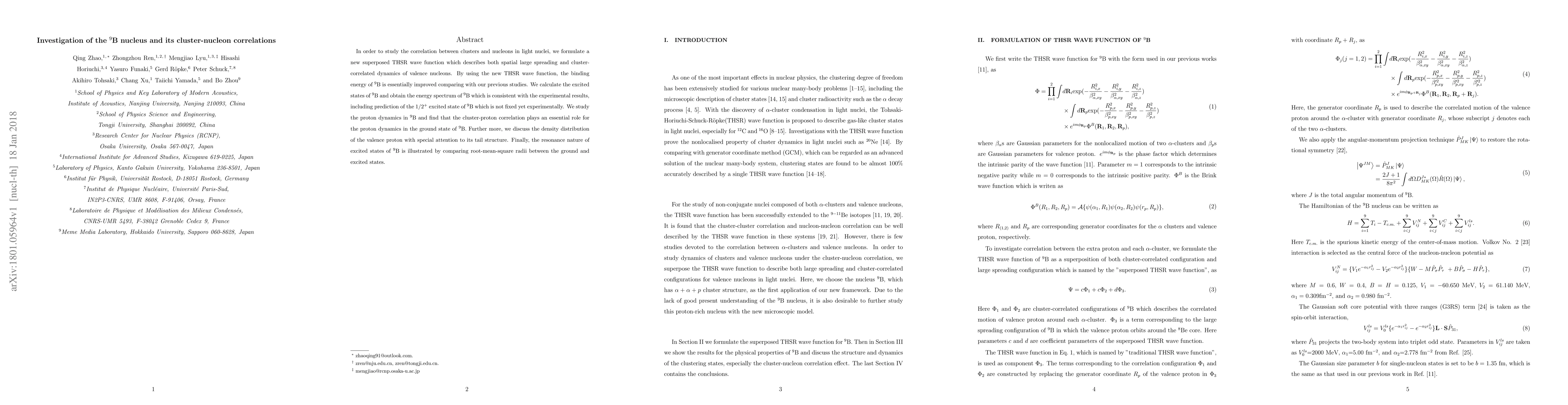This paper introduces a new superposed THSR wave function to study cluster-nucleon correlations in light nuclei, particularly 9B. The new wave function improves the binding energy calculations and predicts the 1/2+ excited state of 9B, consistent with experimental results, while highlighting the essential role of cluster-proton correlation in the nucleus's dynamics.