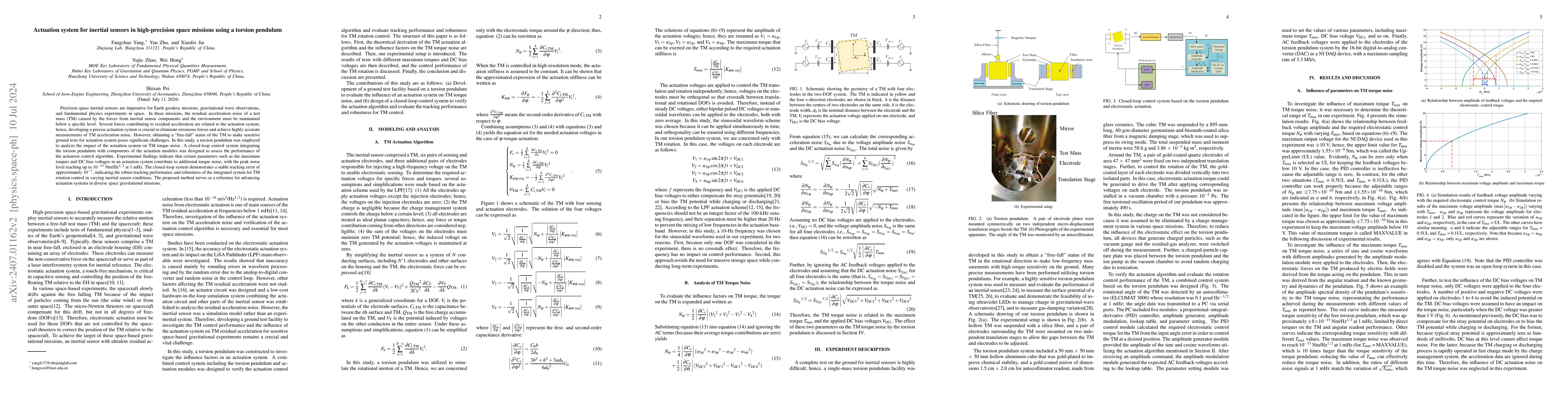 This paper investigates the actuation system of inertial sensors for high-precision space missions using a torsion pendulum. The study finds that the actuation system introduces significant torque noise up to 10^{-13}Nm /Hz^{1/2} at 1 mHz, but a closed-loop control system achieves a stable tracking error of about 10^{-7}, demonstrating robust performance for test mass rotation control.
