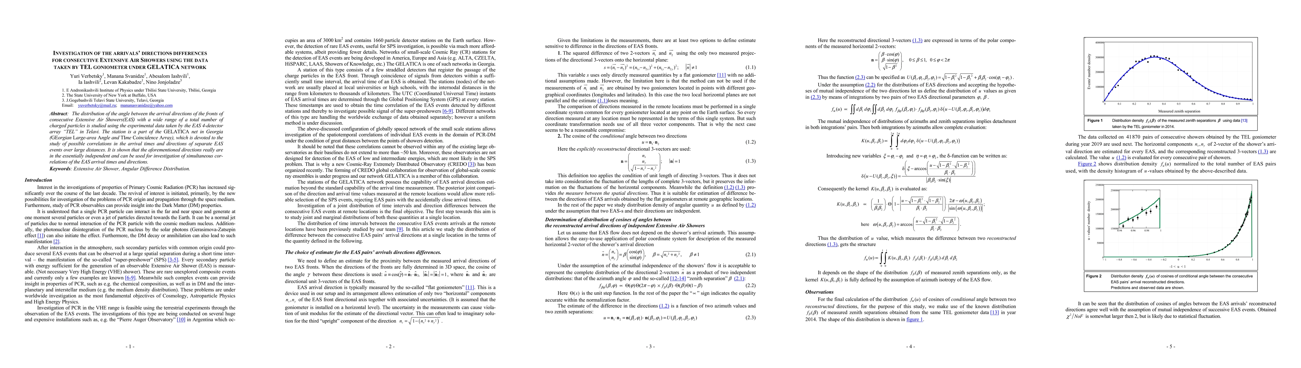 This study investigates the angle differences between consecutive Extensive Air Shower (EAS) front arrival directions using TEL goniometer data within the GELATICA network in Telavi, Georgia. The findings show that these directions are essentially independent, suggesting their potential use for examining simultaneous correlations in EAS arrival times and directions across large distances.