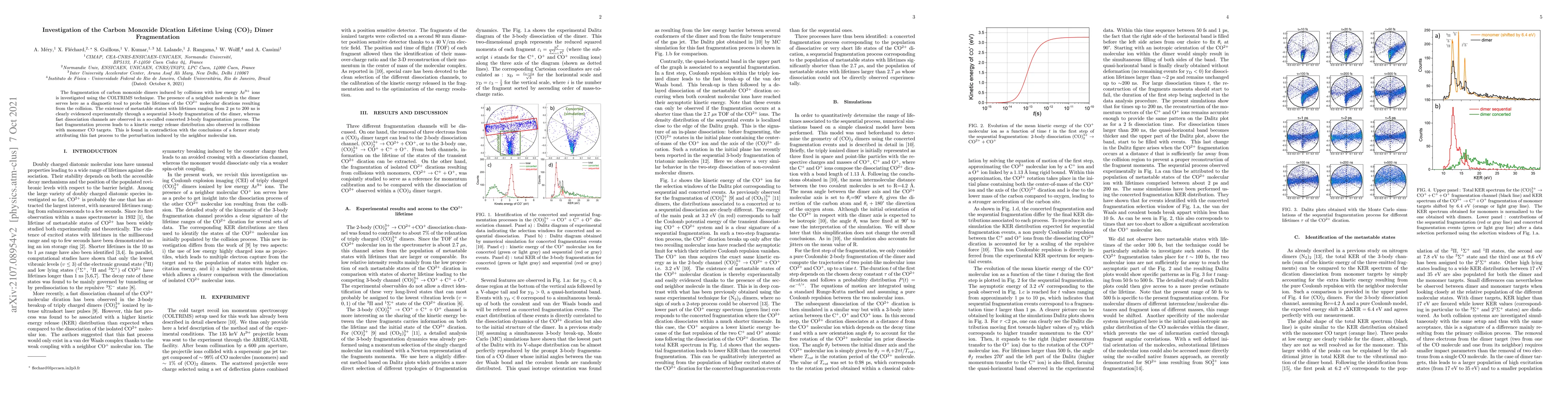 Researchers investigated the collision of carbon monoxide dimers with low-energy ions using COLTRIMS technique, finding metastable states with lifetimes ranging from 2 ps to 200 ns, contradicting previous studies on fast fragmentation processes.