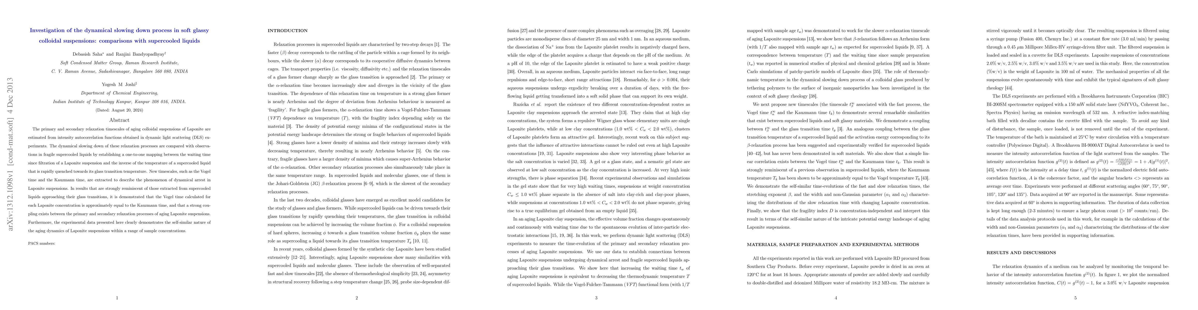 The primary and secondary relaxation timescales of aging colloidal suspensions of Laponite are estimated from intensity autocorrelation functions obtained in dynamic light scattering (DLS) experiments. The dynamical slowing down of these relaxation processes are compared with observations in fragile supercooled liquids by establishing a one-to-one mapping between the waiting time since filtration of a Laponite suspension and the inverse of the temperature of a supercooled liquid that is rapidly quenched towards its glass transition temperature. New timescales, such as the Vogel time and the Kauzmann time, are extracted to describe the phenomenon of dynamical arrest in Laponite suspensions. In results that are strongly reminiscent of those extracted from supercooled liquids approaching their glass transitions, it is demonstrated that the Vogel time calculated for each Laponite concentration is approximately equal to the Kauzmann time, and that a strong coupling exists between the primary and secondary relaxation processes of aging Laponite suspensions. Furthermore, the experimental data presented here clearly demonstrates the self-similar nature of the aging dynamics of Laponite suspensions within a range of sample concentrations.