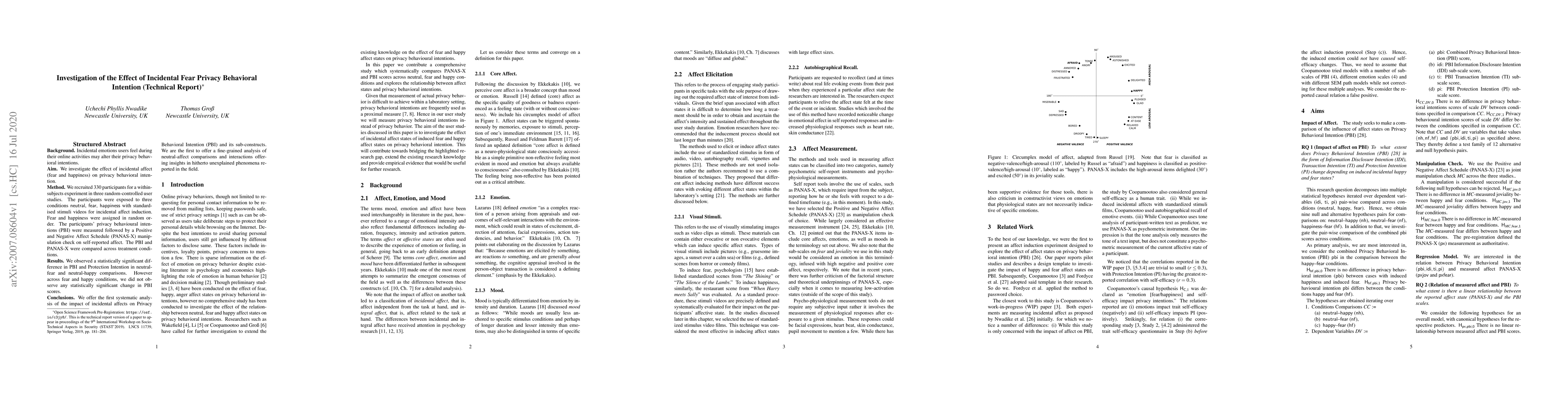 Researchers investigated how incidental emotions like fear and happiness affect people's online privacy intentions. They found that neutral conditions with either positive or negative emotions led to a change in privacy intentions.