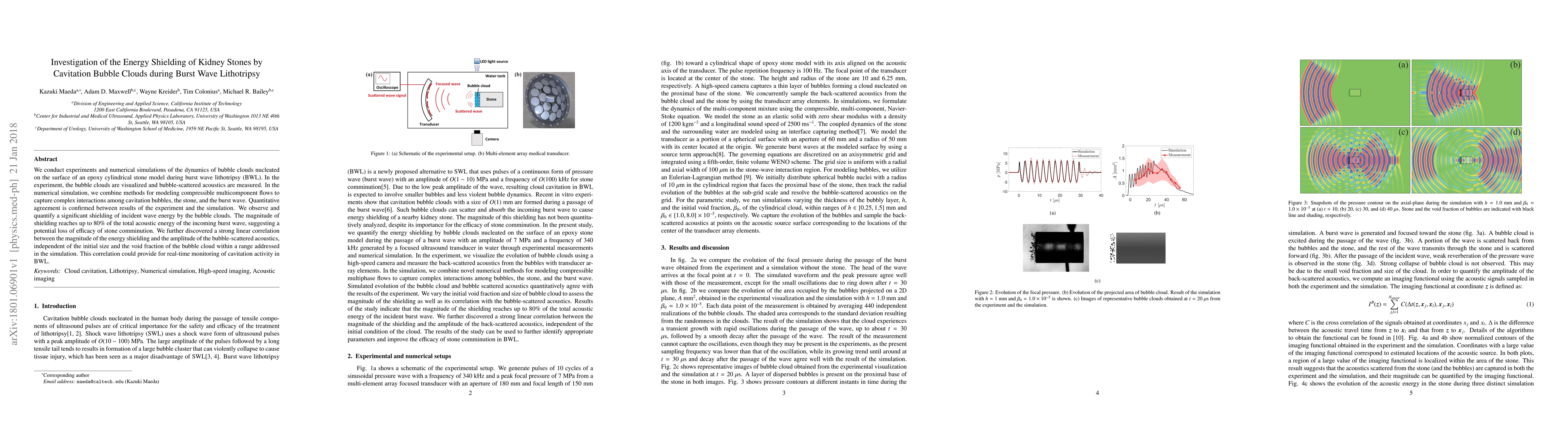 This study investigates the shielding effect of cavitation bubble clouds on kidney stones during burst wave lithotripsy, finding up to 80% energy loss, which may reduce stone comminution efficacy. A strong linear correlation between energy shielding and bubble-scattered acoustics suggests potential for real-time monitoring of cavitation activity.