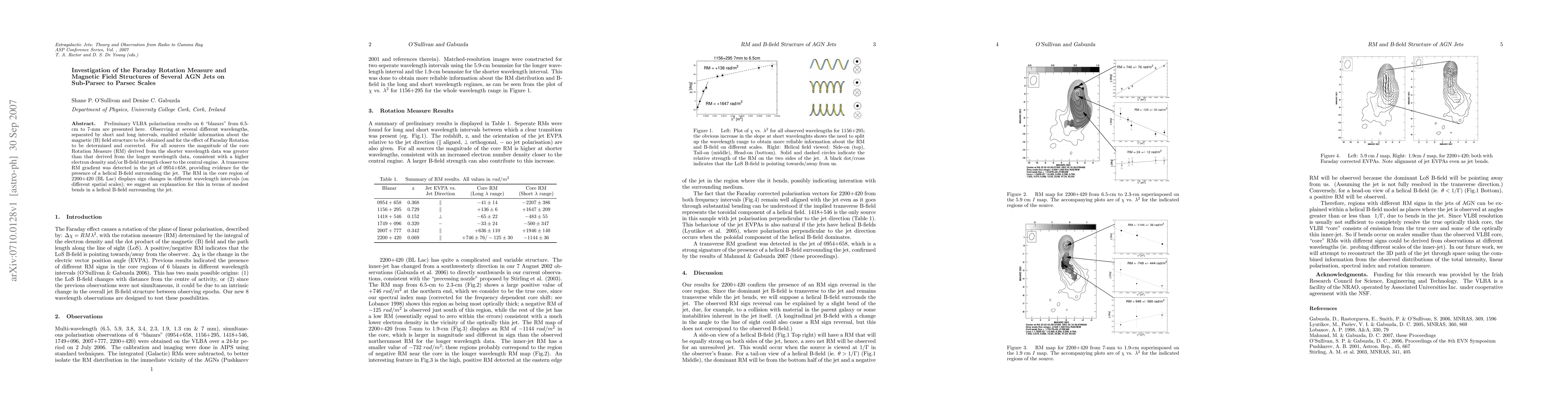 Preliminary VLBA polarisation results on 6 ``blazars'' from 6.5-cm to 7-mm are presented here. Observing at several different wavelengths, separated by short and long intervals, enabled reliable information about the magnetic (B) field structure to be obtained and for the effect of Faraday Rotation to be determined and corrected. For all sources the magnitude of the core Rotation Measure (RM) derived from the shorter wavelength data was greater than that derived from the longer wavelength data, consistent with a higher electron density and/or B-field strength closer to the central engine. A transverse RM gradient was detected in the jet of 0954+658, providing evidence for the presence of a helical B-field surrounding the jet. The RM in the core region of 2200+420 (BL Lac) displays sign changes in different wavelength intervals (on different spatial scales); we suggest an explanation for this in terms of modest bends in a helical B-field surrounding the jet.
