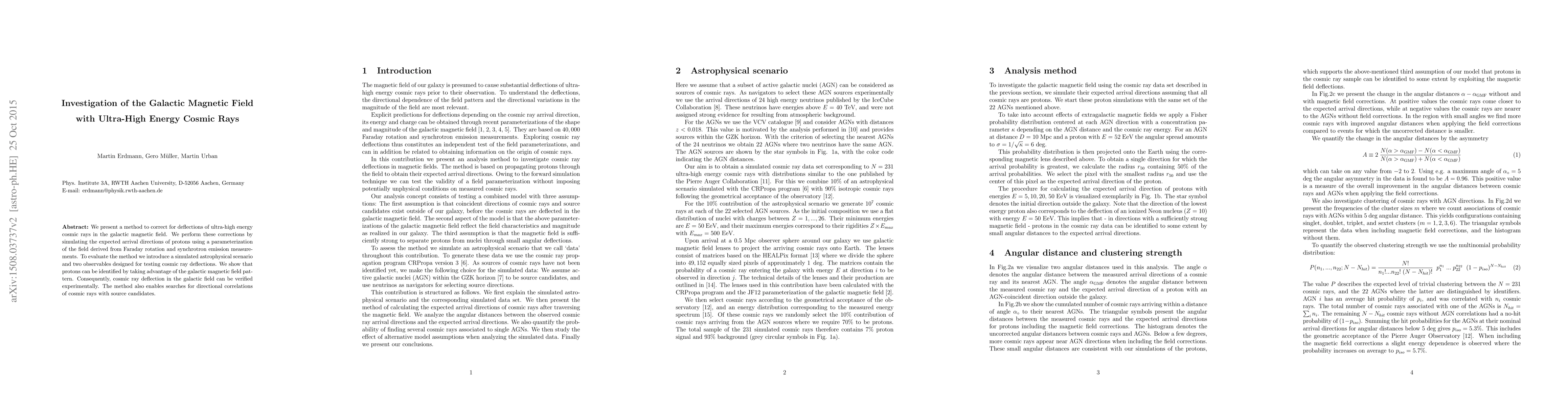 This paper proposes a method to correct for deflections of ultra-high energy cosmic rays due to the galactic magnetic field, using simulations based on field parameterizations derived from observational data. The method allows for the identification of protons and verification of cosmic ray deflections, facilitating searches for directional correlations with cosmic ray sources.