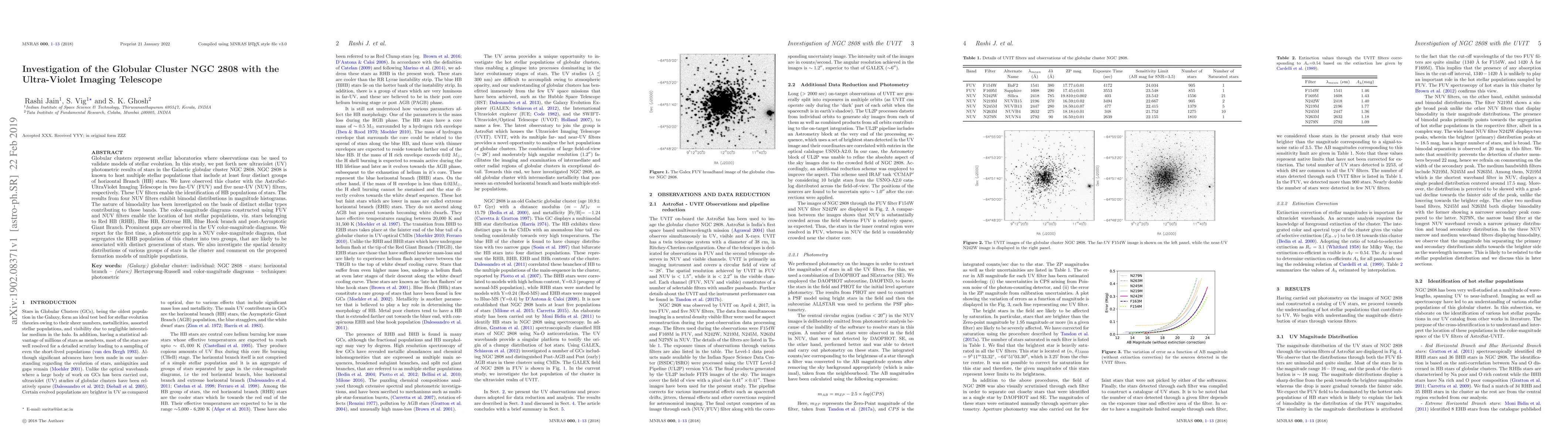 This study uses ultraviolet (UV) observations from the AstroSat-UltraViolet Imaging Telescope to analyze the globular cluster NGC 2808, revealing distinct populations of horizontal branch stars and identifying bimodal distributions in magnitude histograms. The research highlights a new photometric gap in a near-UV color-magnitude diagram, suggesting two generations of Red Horizontal Branch stars, and discusses the spatial density distributions and implications for formation models of multiple stellar populations.