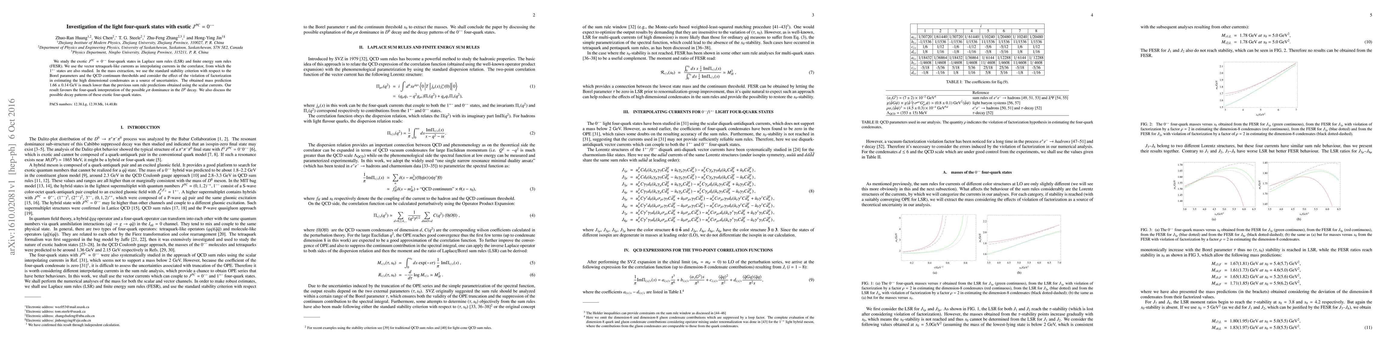 This paper investigates four-quark states with exotic JPC=0^{--} using Laplace sum rules and finite energy sum rules, predicting a mass of 1.66 GeV, which favors the four-quark interpretation of the $ ho heta$ dominance in $D^0$ decay.