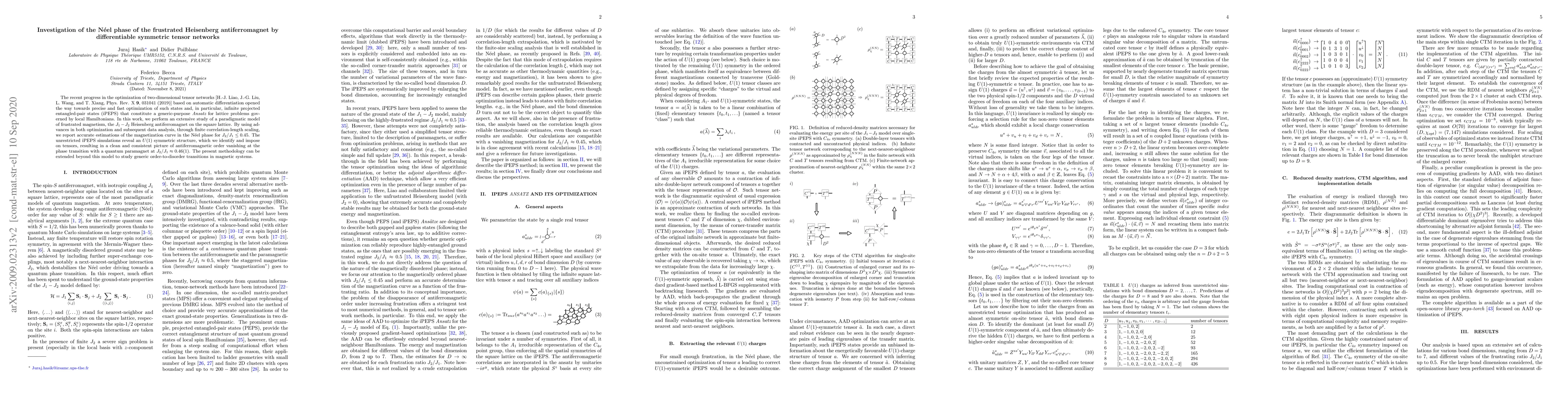The recent progress in the optimization of two-dimensional tensor networks [H.-J. Liao, J.-G. Liu, L. Wang, and T. Xiang, Phys. Rev. X ${\bf 9}$, 031041 (2019)] based on automatic differentiation opened the way towards precise and fast optimization of such states and, in particular, infinite projected entangled-pair states (iPEPS) that constitute a generic-purpose ${\it Ansatz}$ for lattice problems governed by local Hamiltonians. In this work, we perform an extensive study of a paradigmatic model of frustrated magnetism, the $J_1-J_2$ Heisenberg antiferromagnet on the square lattice. By using advances in both optimization and subsequent data analysis, through finite correlation-length scaling, we report accurate estimations of the magnetization curve in the N\'eel phase for $J_2/J_1 \le 0.45$. The unrestricted iPEPS simulations reveal an $U(1)$ symmetric structure, which we identify and impose on tensors, resulting in a clean and consistent picture of antiferromagnetic order vanishing at the phase transition with a quantum paramagnet at $J_2/J_1 \approx 0.46(1)$. The present methodology can be extended beyond this model to study generic order-to-disorder transitions in magnetic systems.