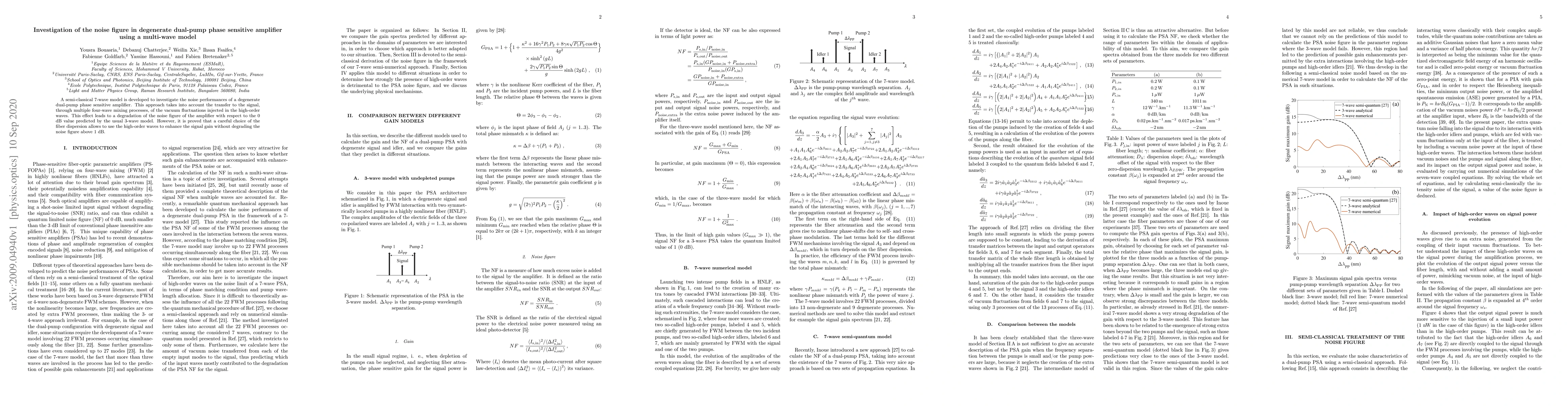 This paper develops a 7-wave semi-classical model to analyze the noise figure in a degenerate dual-pump phase sensitive amplifier, revealing that vacuum fluctuations transferred via multiple four-wave mixing processes degrade the noise figure. It concludes that optimal fiber dispersion can enhance signal gain without exceeding a 1 dB noise figure.