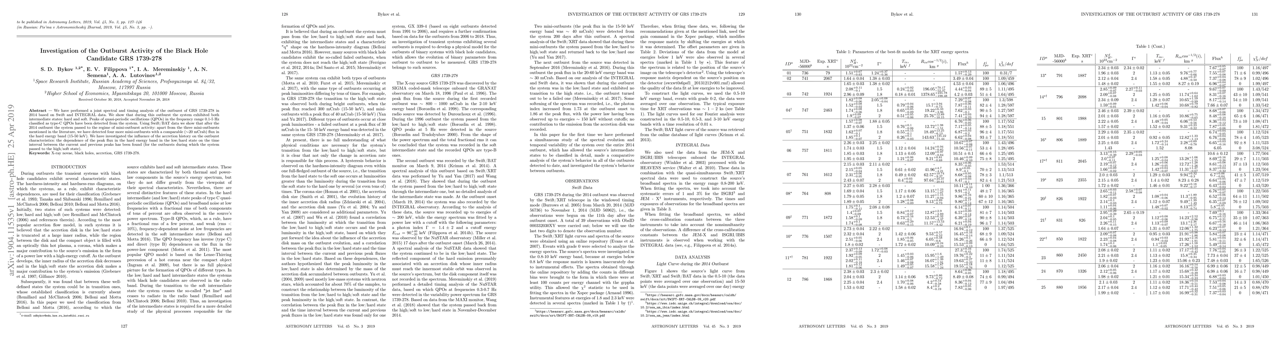 We have performed a joint spectral and timing analysis of the outburst of GRS 1739-278 in 2014 based on Swift and INTEGRAL data. We show that during this outburst the system exhibited both intermediate states: hard and soft. Peaks of quasi-periodic oscillations (QPOs) in the frequency range 0.1-5 Hz classified as type-C QPOs have been detected from the system. Using Swift/BAT data we show that after the 2014 outburst the system passed to the regime of mini-outburst activity: apart from the three mini-outbursts mentioned in the literature, we have detected four more mini-outbursts with a comparable (~20 mCrab) flux in the hard energy band (15-50 keV). We have investigated the influence of the accretion history on the outburst characteristics: the dependence of the peak flux in the hard energy band in the low/hard state on the time interval between the current and previous peaks has been found (for the outbursts during which the system passed to the high/soft state).