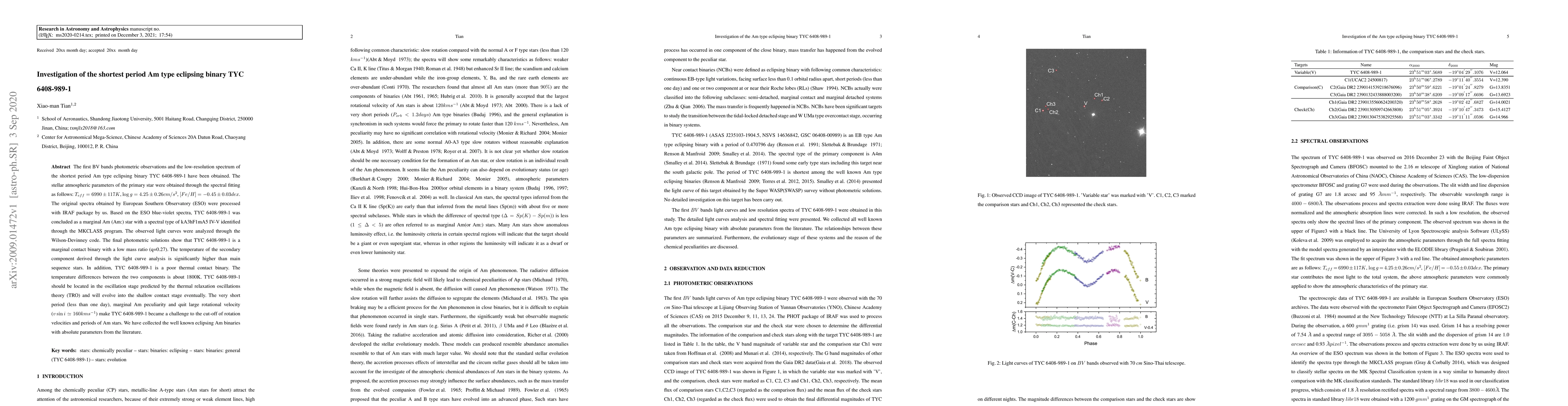 This paper investigates the shortest period Am type eclipsing binary TYC 6408-989-1, revealing it as a marginal Am star with a spectral type kA3hF1mA5 IV-V, and a marginal contact binary with a low mass ratio. The primary star's atmospheric parameters were determined, and the system is predicted to evolve into a shallow contact stage.