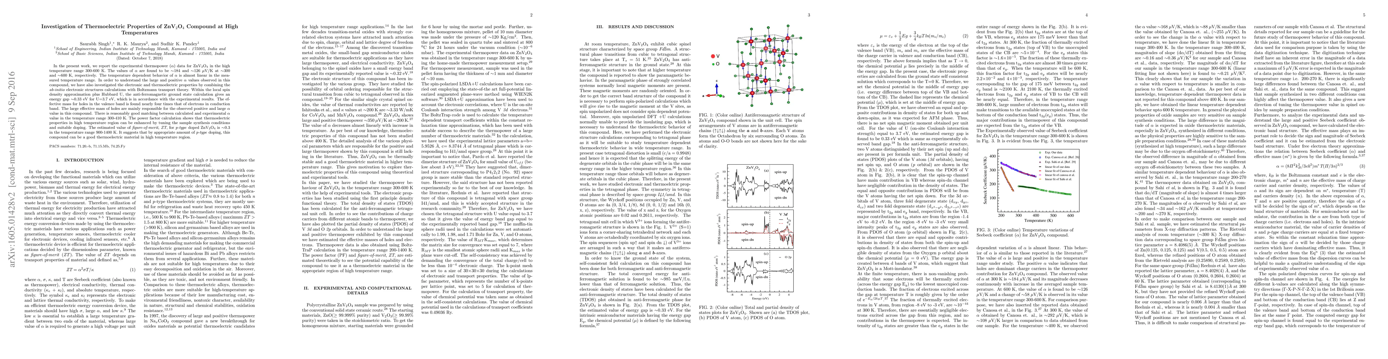 This study investigates the thermoelectric properties of ZnV$_{2}$O$_{4}$ in the high temperature range of 300-600 K, revealing a large thermopower value of approximately 184 $\mu$V/K at 300 K, which decreases to 126 $\mu$V/K at 600 K. The compound's positive and significant thermopower is attributed to the large effective mass of holes, suggesting potential for enhanced thermoelectric performance through optimized synthesis and doping.