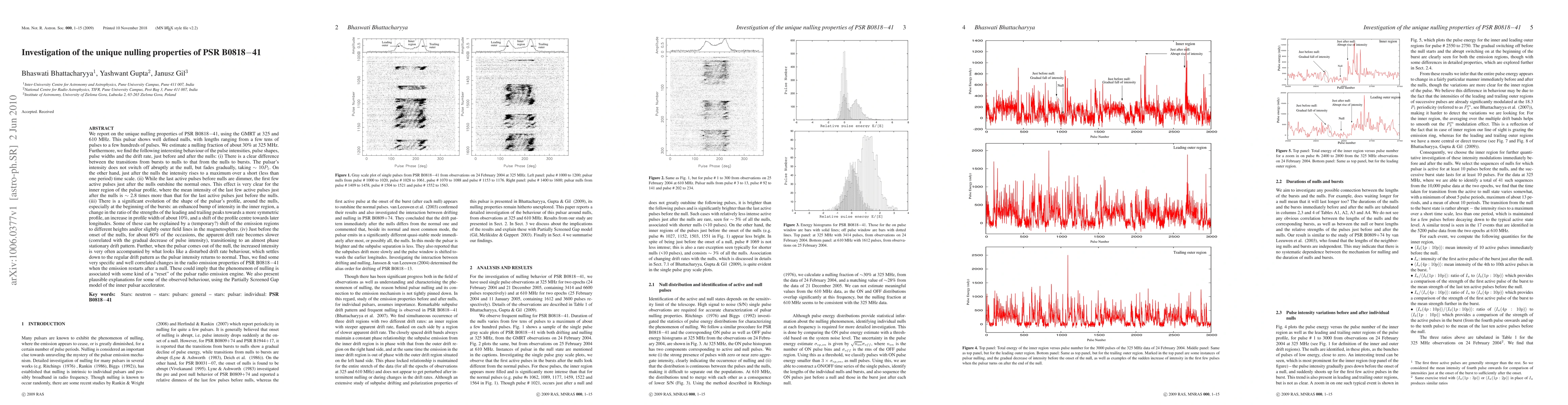 The paper presents detailed analysis of nulling behavior in PSR B0818-41, including intensity distribution, profile shape evolution, and drift rate changes, providing a comprehensive understanding of nulling events in pulsars.