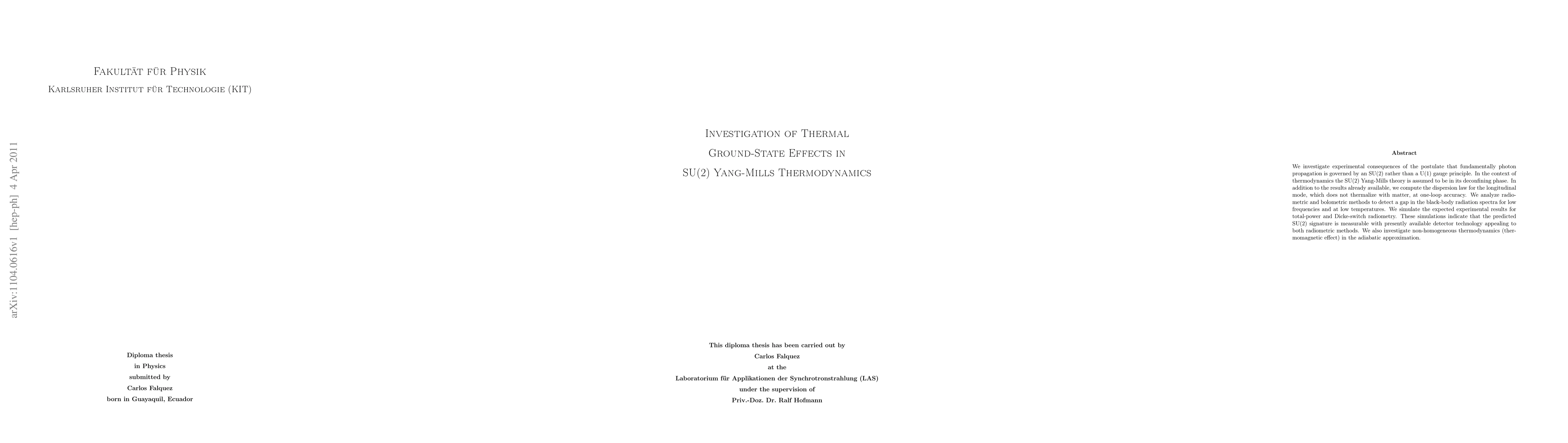 We investigate experimental consequences of the postulate that fundamentally photon propagation is governed by an SU(2) rather than a U(1) gauge principle. In the context of thermodynamics the SU(2) Yang-Mills theory is assumed to be in its deconfining phase. In addition to the results already available, we compute the dispersion law for the longitudinal mode, which does not thermalize with matter, at one-loop accuracy. We analyze radiometric and bolometric methods to detect a gap in the black-body radiation spectra for low frequencies and at low temperatures. We simulate the expected experimental results for total-power and Dicke-switch radiometry. These simulations indicate that the predicted SU(2) signature is measurable with presently available detector technology appealing to both radiometric methods. We also investigate non-homogeneous thermodynamics (thermomagnetic effect) in the adiabatic approximation.