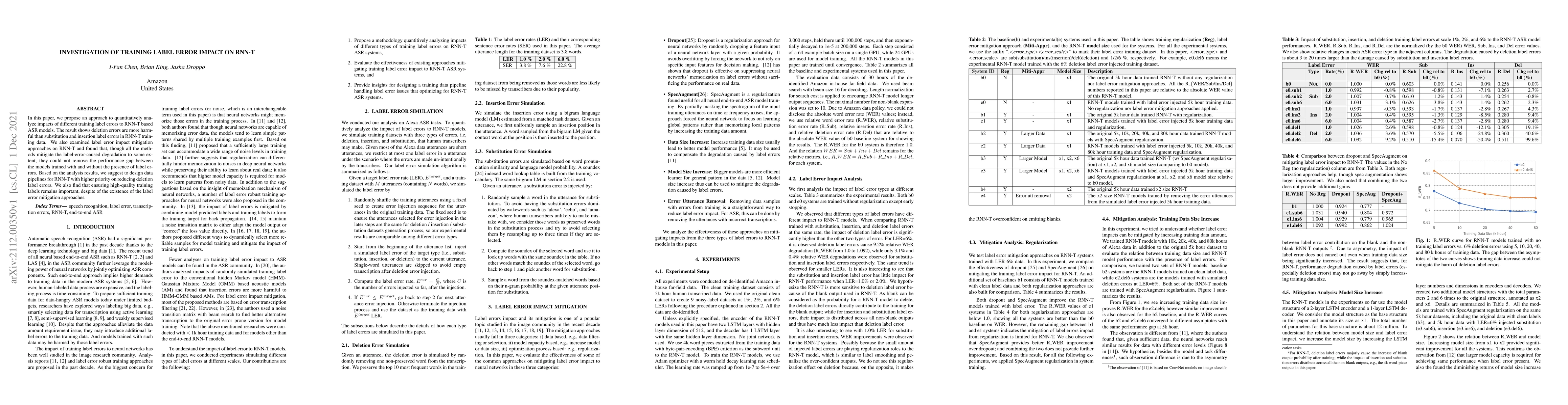 This paper investigates how various training label errors affect RNN-T based ASR models, finding that deletion errors are more detrimental than substitution or insertion errors. It also explores mitigation strategies, concluding that while they help, they cannot fully eliminate performance gaps caused by label errors, emphasizing the importance of minimizing deletion errors and maintaining high-quality training data.