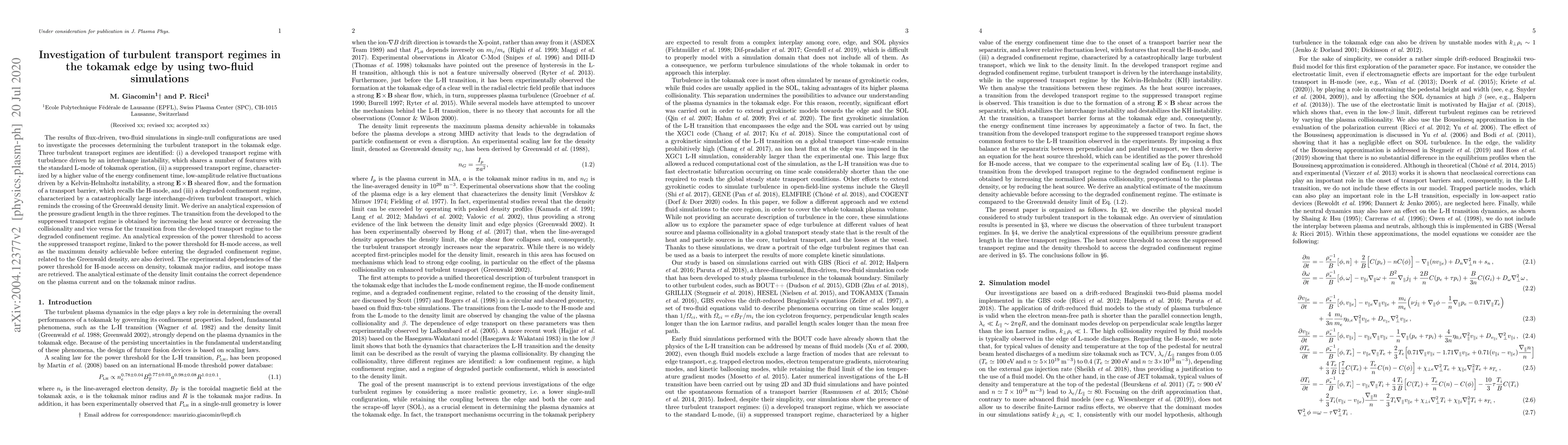 This paper investigates turbulent transport regimes in the tokamak edge using two-fluid simulations, identifying three regimes: developed, suppressed, and degraded confinement. Analytical expressions for pressure gradient length and transition conditions between regimes are derived, linking the suppressed regime to H-mode and degraded confinement to the Greenwald density limit.