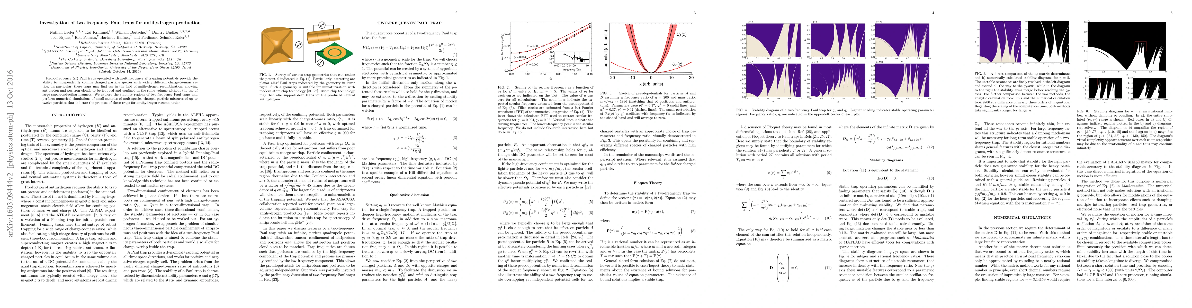 This paper investigates the use of two-frequency Paul traps for antihydrogen production, demonstrating their potential to confine antiproton and positron clouds together without large magnets. Numerical simulations show promising stability regions for these traps in multispecies charged-particle mixtures.