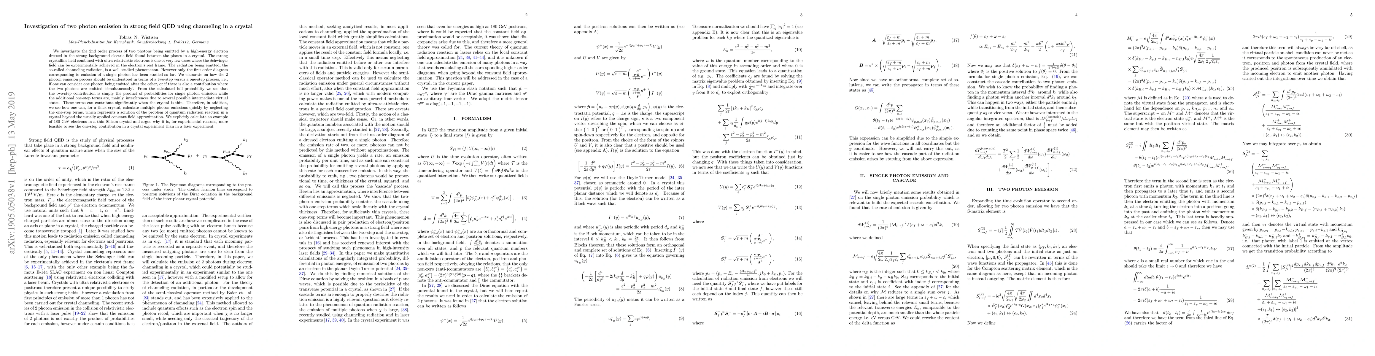 Researchers investigate two-photon emission in strong field quantum electrodynamics using channeling in a crystal, finding that the process can occur either simultaneously or sequentially, with sequential emission being the dominant contribution.
