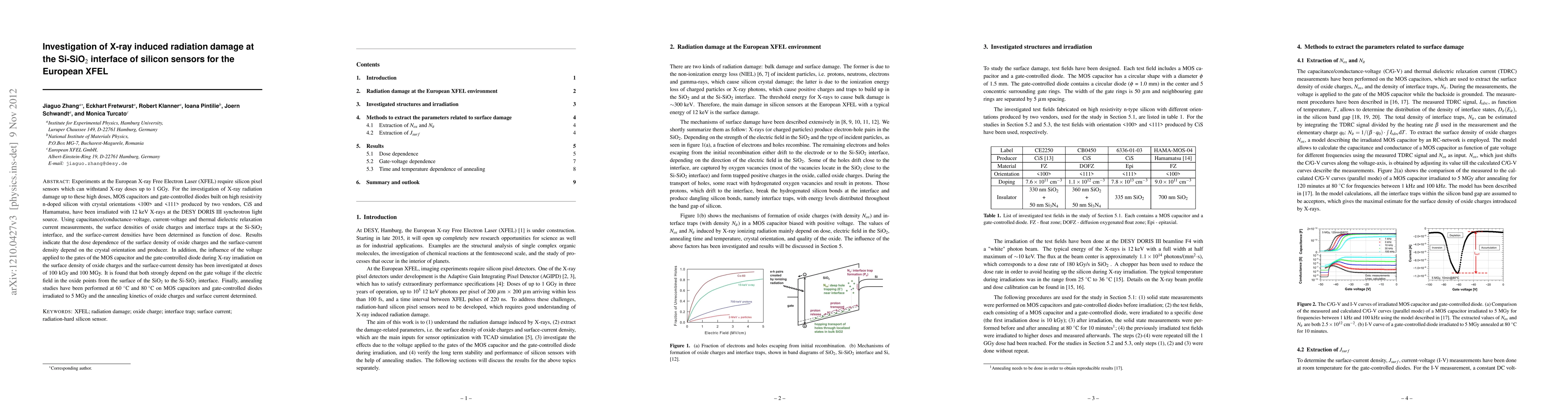This study investigates X-ray induced radiation damage at the Si-SiO2 interface in silicon sensors for the European XFEL, finding that the dose dependence of oxide charges and surface-current density varies with crystal orientation and manufacturer. The applied gate voltage during irradiation significantly affects these parameters, especially when the electric field points from the SiO2 surface to the interface.