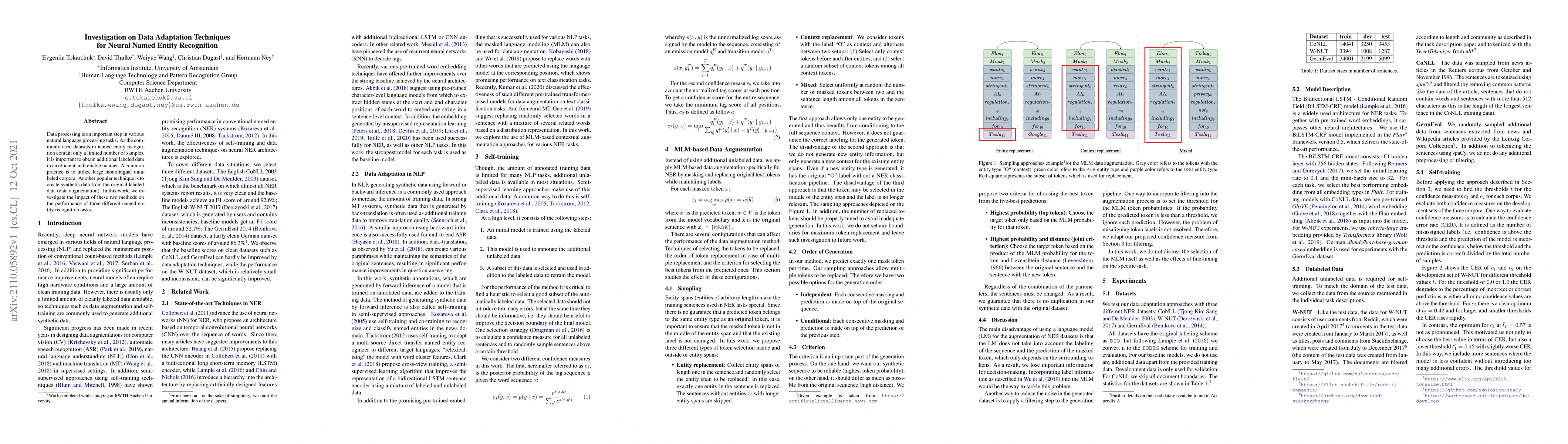 Data processing is an important step in various natural language processing tasks. As the commonly used datasets in named entity recognition contain only a limited number of samples, it is important to obtain additional labeled data in an efficient and reliable manner. A common practice is to utilize large monolingual unlabeled corpora. Another popular technique is to create synthetic data from the original labeled data (data augmentation). In this work, we investigate the impact of these two methods on the performance of three different named entity recognition tasks.